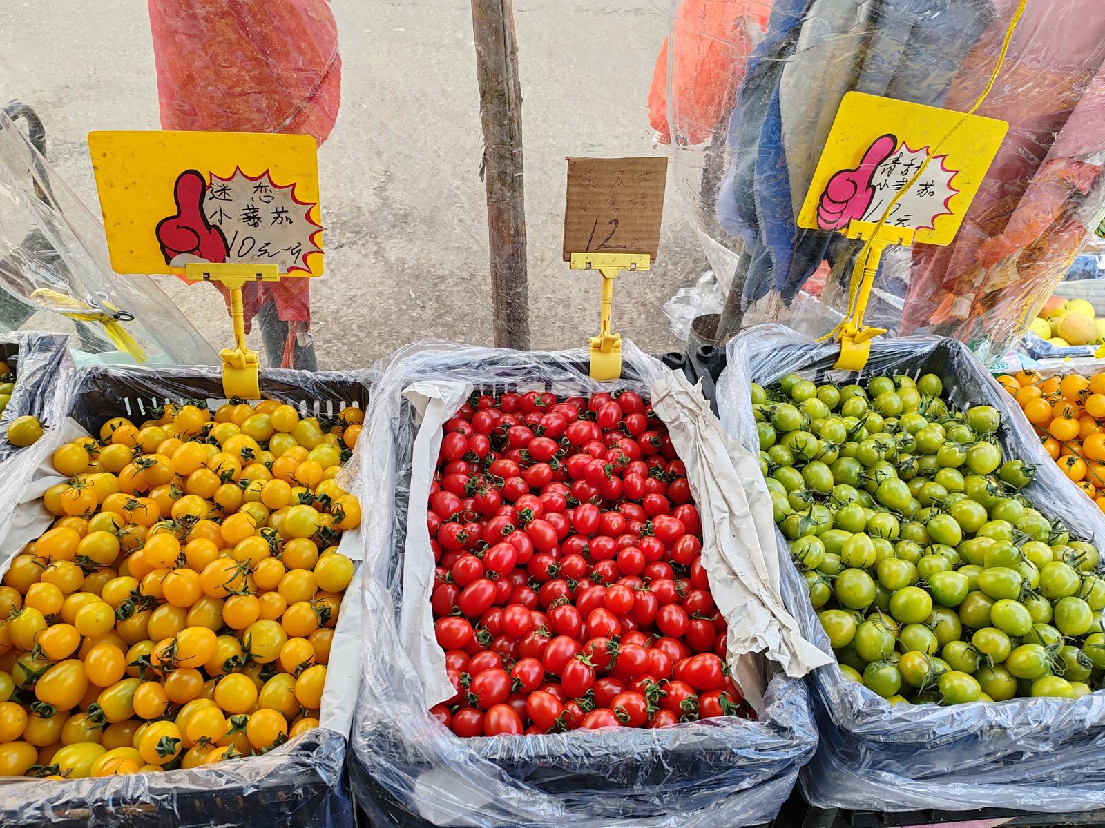 在距工农南路不远的一家农贸市场内,一位摊主出售的各种小西红柿,也吸引不少市民。记者看到,一只只泡沫箱内,草莓西红柿每500克10元,糖伯虎小西红柿每500克10元,爱力士小西红柿每500克12元,迷恋小西红柿每500克10元。