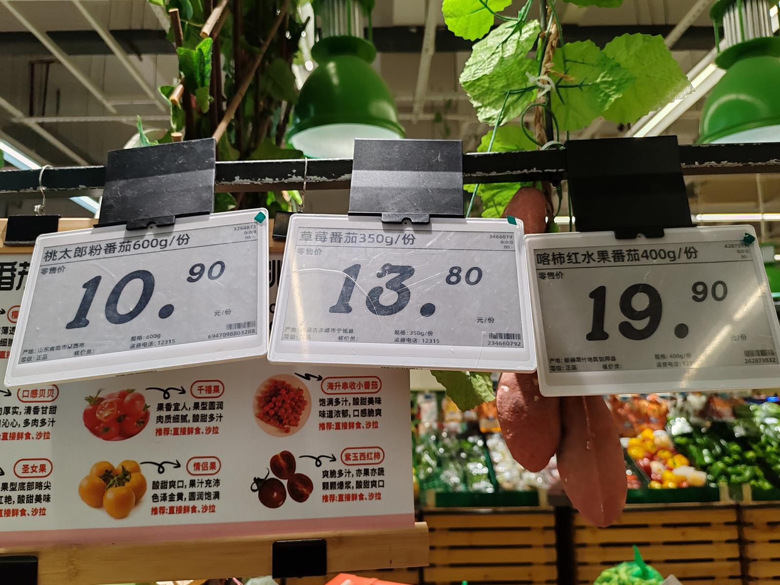 除了强调“贵有贵的理由”,商家还贴心地在专柜上附注了供消费者参考的“西红柿做法推荐”,张贴出“西红柿·圣女果该如何挑选?”的贴心海报,提示消费者从果型、色泽、品种等多个方面进行优选。