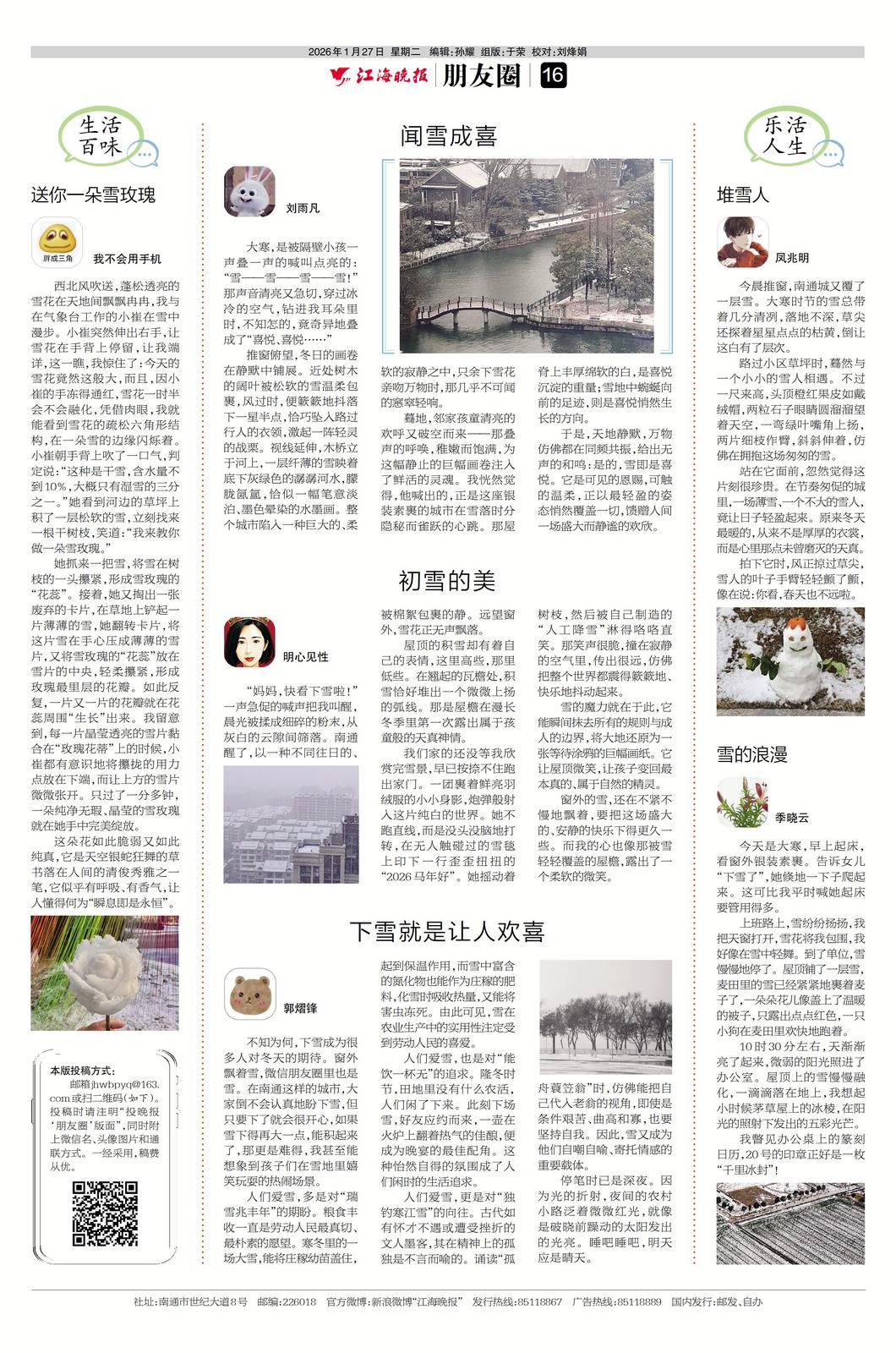 今晨推窗,南通城又覆了一层雪。大寒时节的雪总带着几分清冽,落地不深,草尖还探着星星点点的枯黄,倒让这白有了层次。