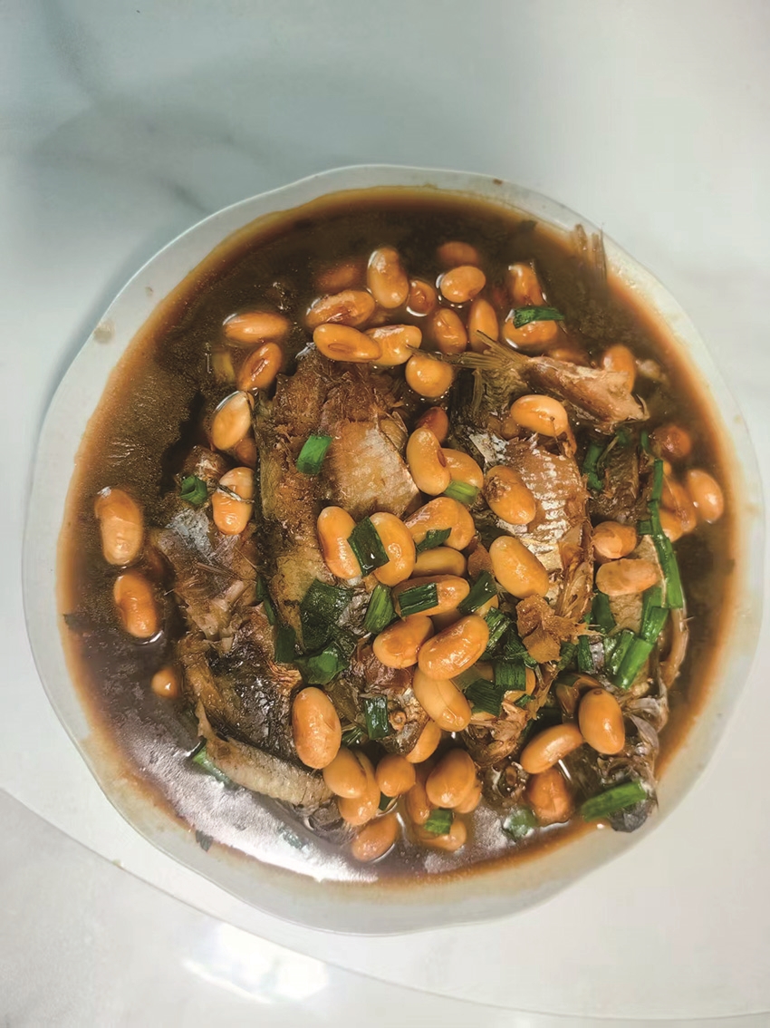 望着妻子娴熟的动作,母亲烧冻豆的往事陡然浮现。旧时,临近春节,生产队分鱼,大鱼留着过年,我们孩童最盼的便是一碗鱼冻。寒夜料峭,母亲在土灶旁忙碌,鱼头、鱼尾入锅煎制。柴火的“噼啪”作响,如一场庄重仪式。锅内“咕噜”冒泡,热气裹着香味弥漫在逼仄的厨房间,引得外面的狗猫叫闹。待鱼肉鱼骨炖出胶质,母亲倒入煮烂的黄豆,让胖胖的豆子与浓稠的汤汁水乳交融,最后撒葱花起锅。