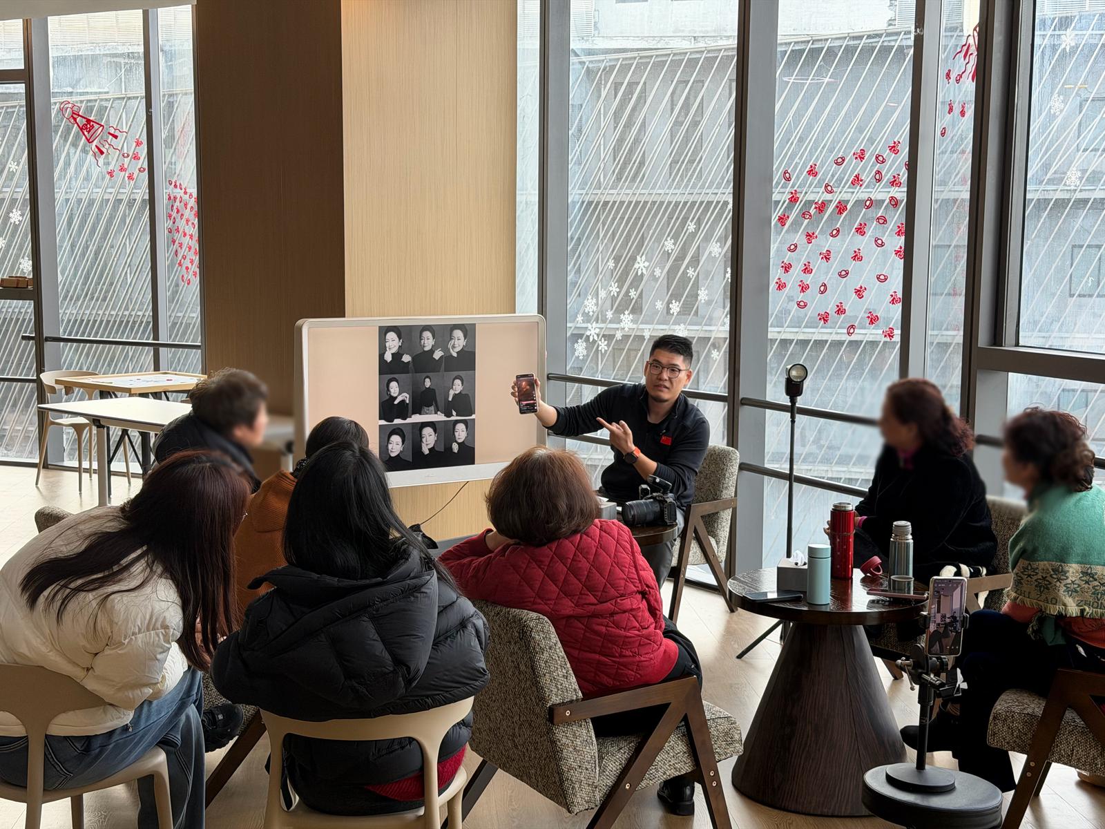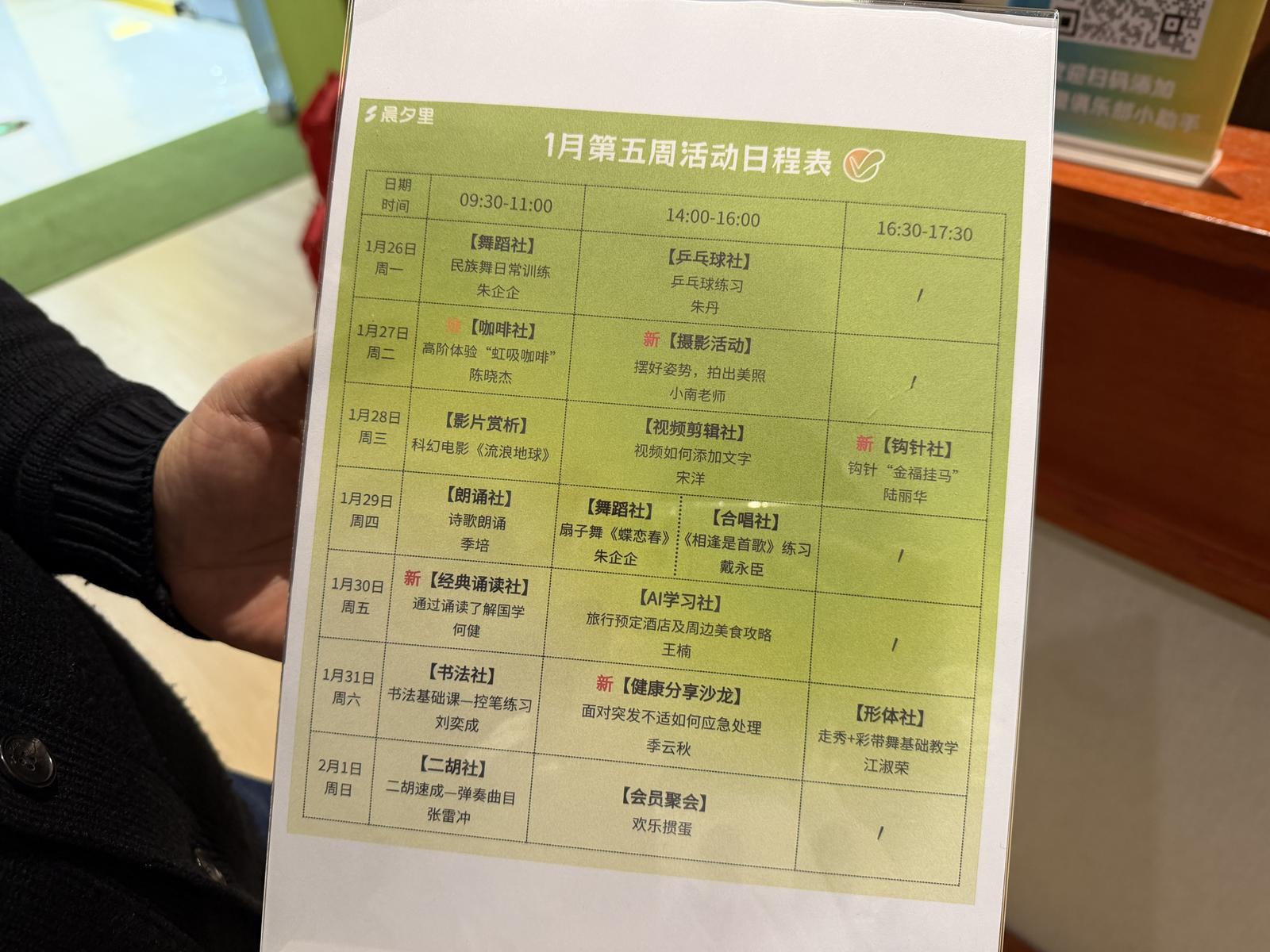 “来到这里,不单是学习新知识,更是结交新朋友、发挥余热、实现自我。”朱丹介绍,俱乐部每天上午9时30分至下午6时开放,安排两到三场主题活动,以兴趣社团的形式展开,内容既有合唱、书法、二胡等传统文化主题,也有手机视频剪辑、AI应用、咖啡品鉴等实用新潮内容。活动表每周更新,还会根据会员反馈随时调整。“很多叔叔阿姨为了不麻烦子女,明明知道手机订票更划算,却还是选择多花钱找旅行社代办。所以我们专门开设美团、携程等手机应用课,工作人员也随时手把手教他们。他们学得可积极了,对新事物的热情一点不比年轻人少。”