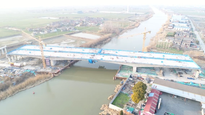 宁盐高速公路扬州段三垛互通跨三阳河主桥合龙
