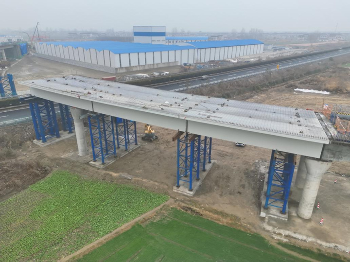 近日,如皋至常州高速公路黄桥至泰兴段全线首跨钢箱梁吊装完成,标志着项目桥梁上部施工迈入新阶段。
