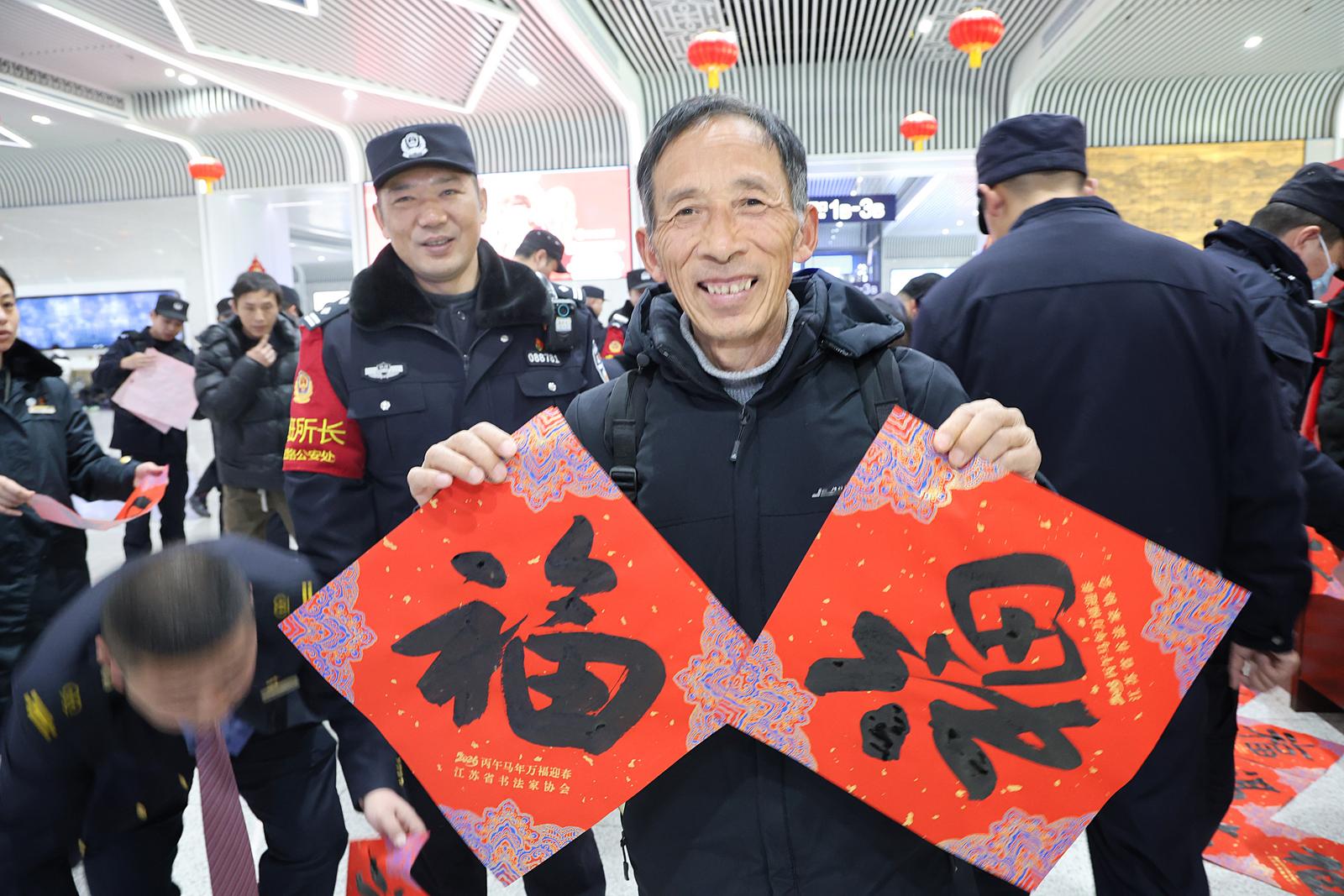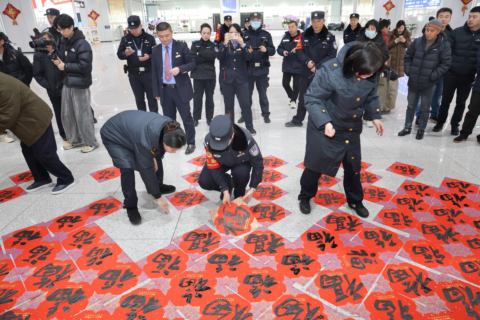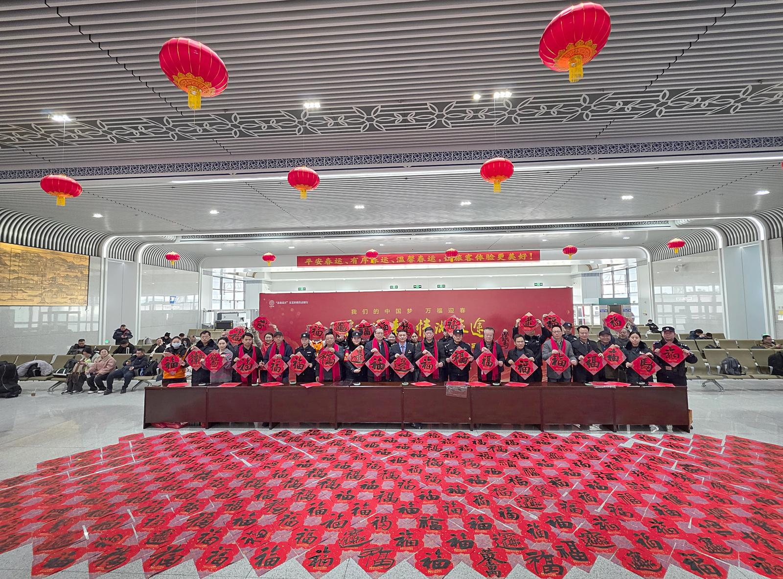 2026年2月1日,南通西站携手南通市书法家协会举办的“福至运来 情满旅途——我们的中国梦·万福迎春”活动在候车大厅举行,南通市多位书法家应邀到现场挥毫泼墨,车站工作人员、铁路民警等将“福”字送到旅客手中,送上新春的祝福。