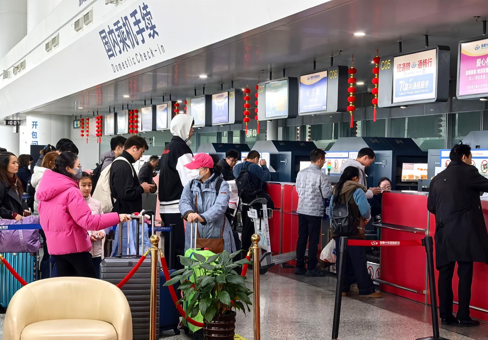 当天上午,在崇川区工作的董先生夫妻来到机场送老人和孩子乘机,“我和老婆下周才放假,最近南通气温较低,先来送老人和孩子乘飞机回云南大理。”除了返乡外,刚刚参加工作的小王则是请了年假,在年前和两位朋友一起飞往成都,开启五天的愉快假期。