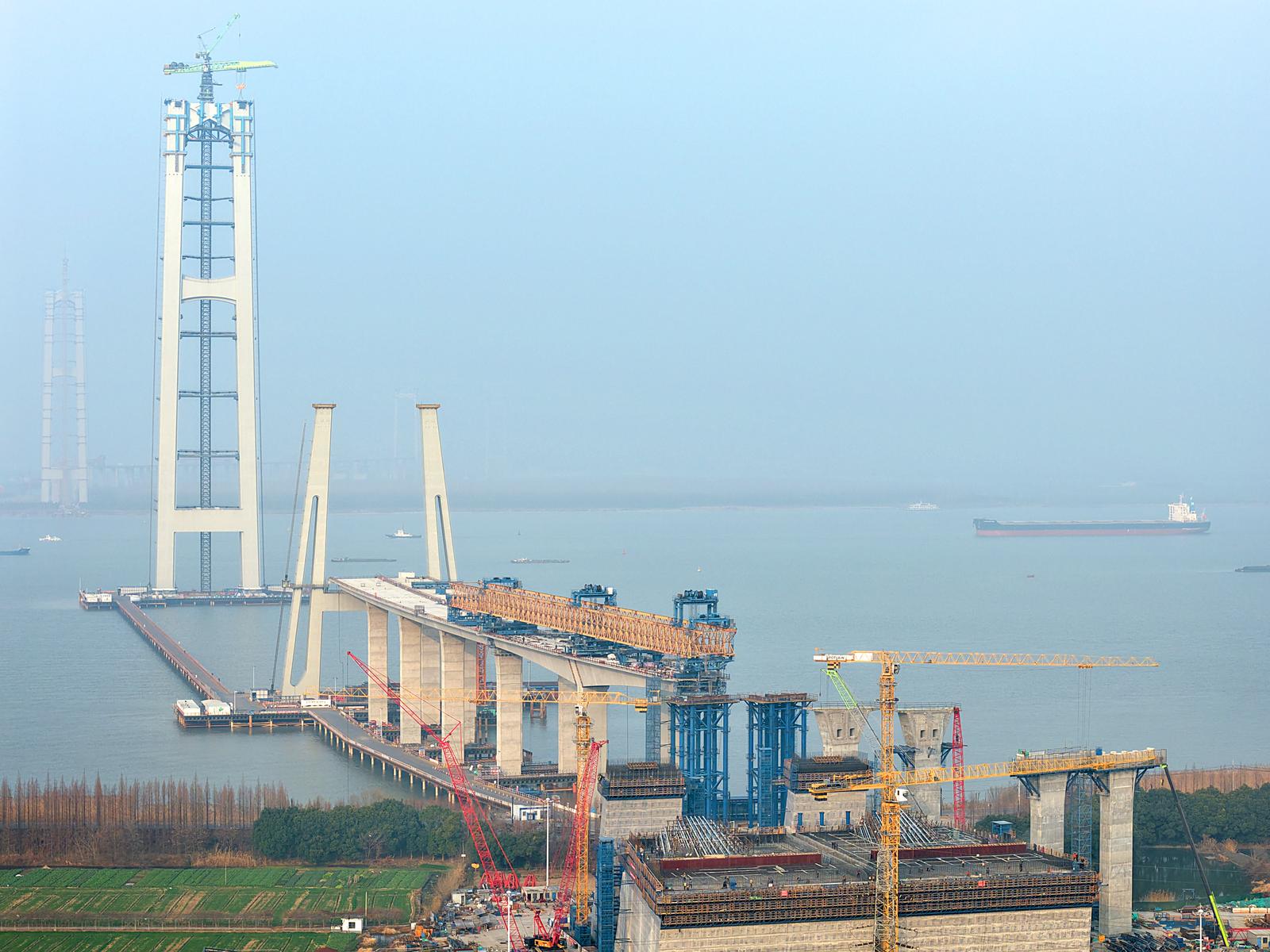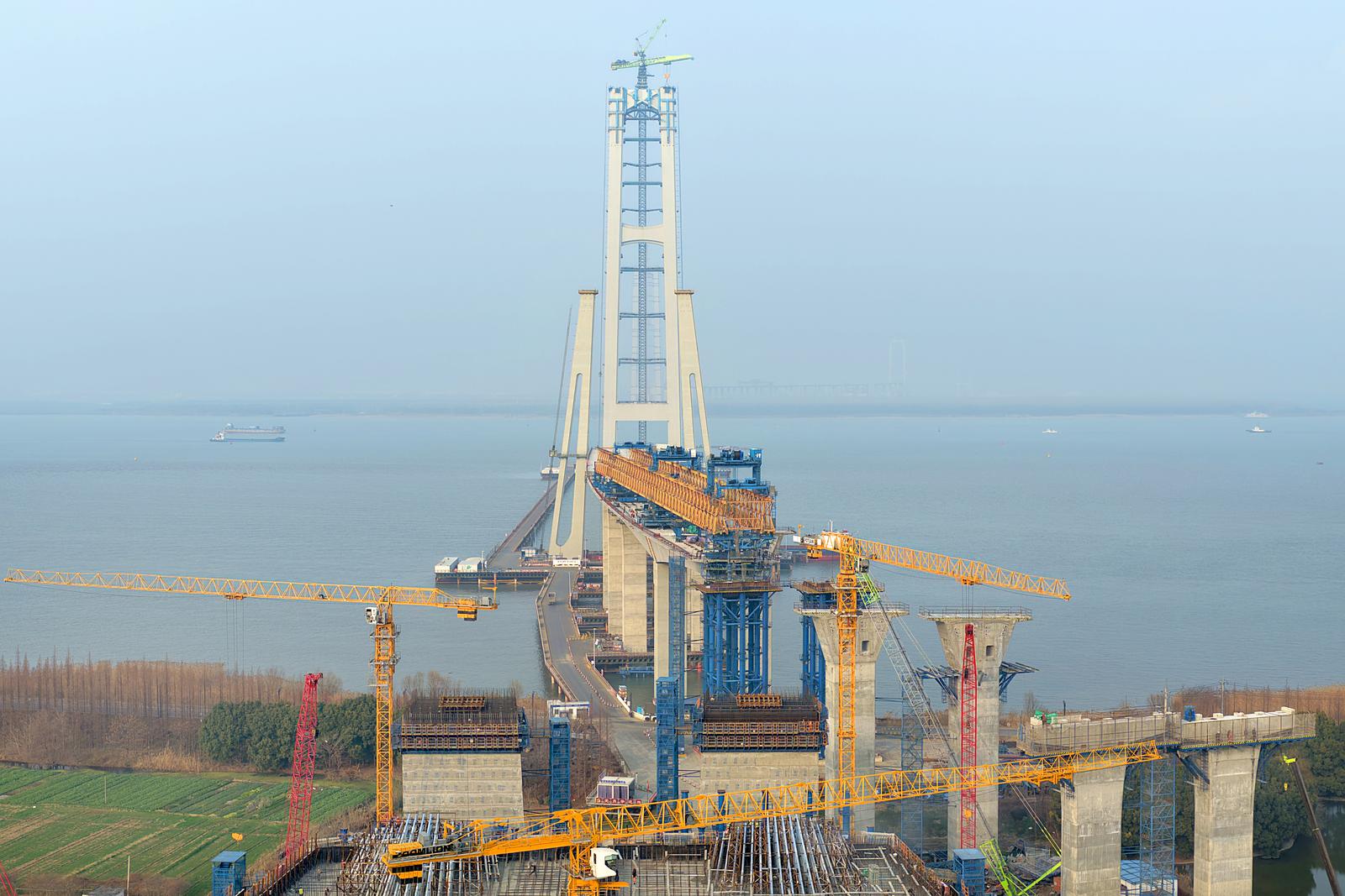 张靖皋长江大桥连接苏州张家港、泰州靖江和南通如皋三市,是目前在建的世界最大跨径悬索桥,建成后将极大地促进长三角区域一体化发展。