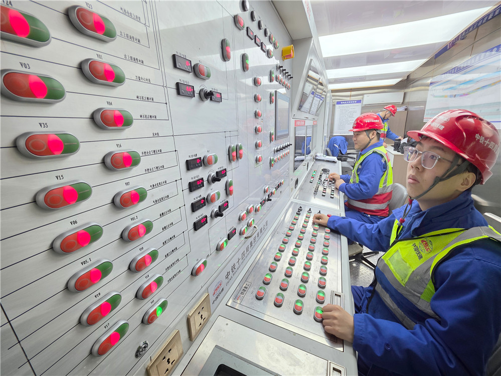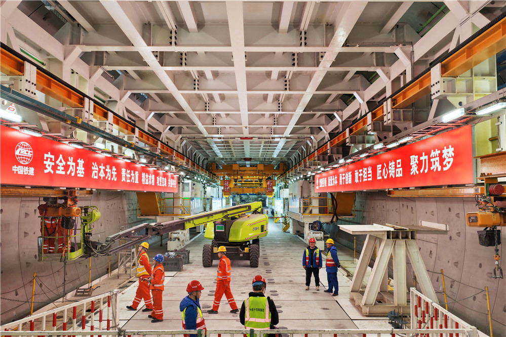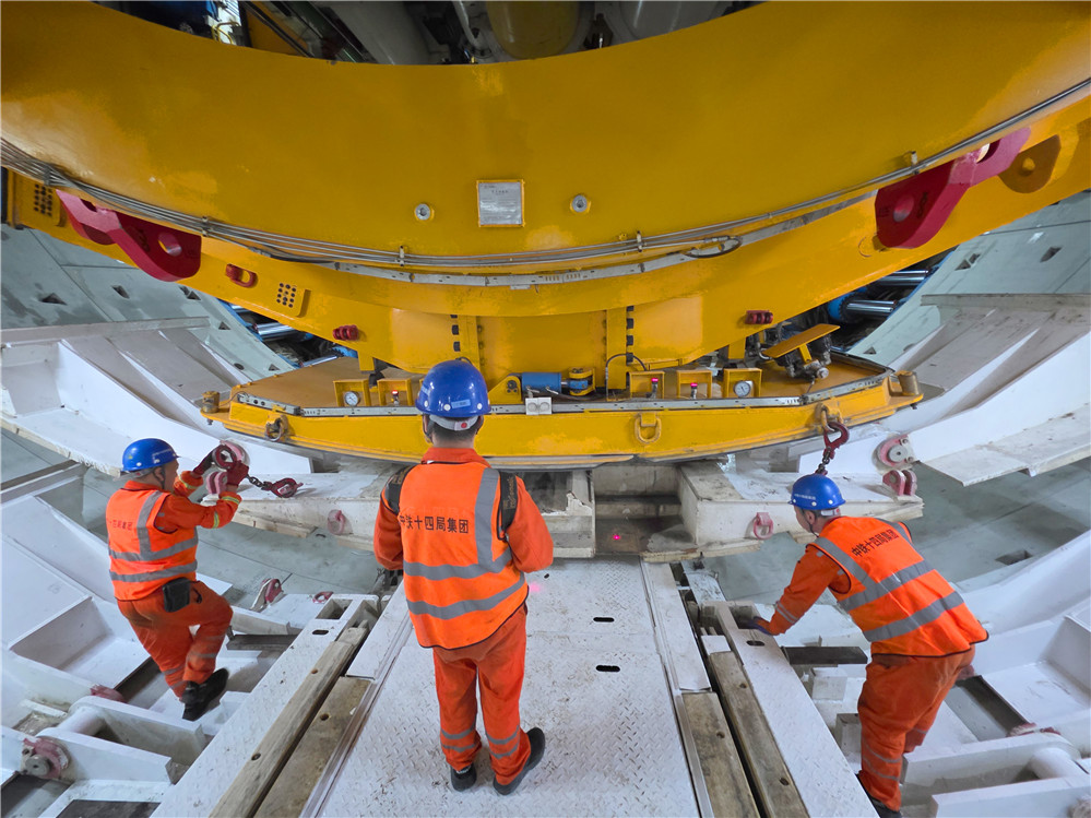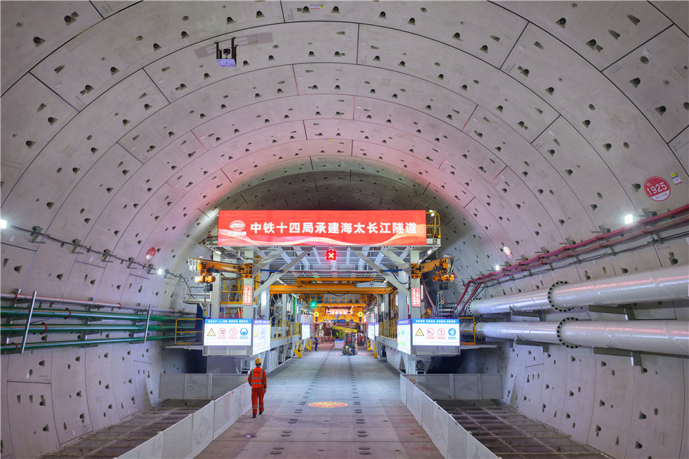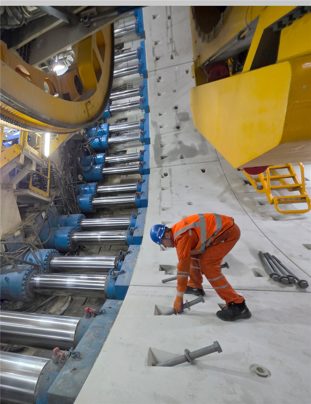 2026年2月3日拍摄的由中铁十四局施工的海太长江隧道工程盾构掘进施工现场。世界最长公路水下隧道——海太长江隧道“江海号”盾构机掘进达4000米,完成总掘进任务的43%。