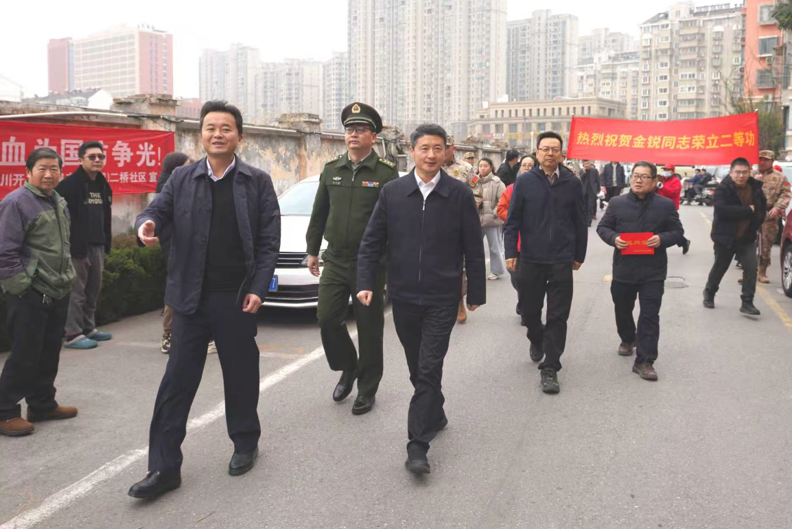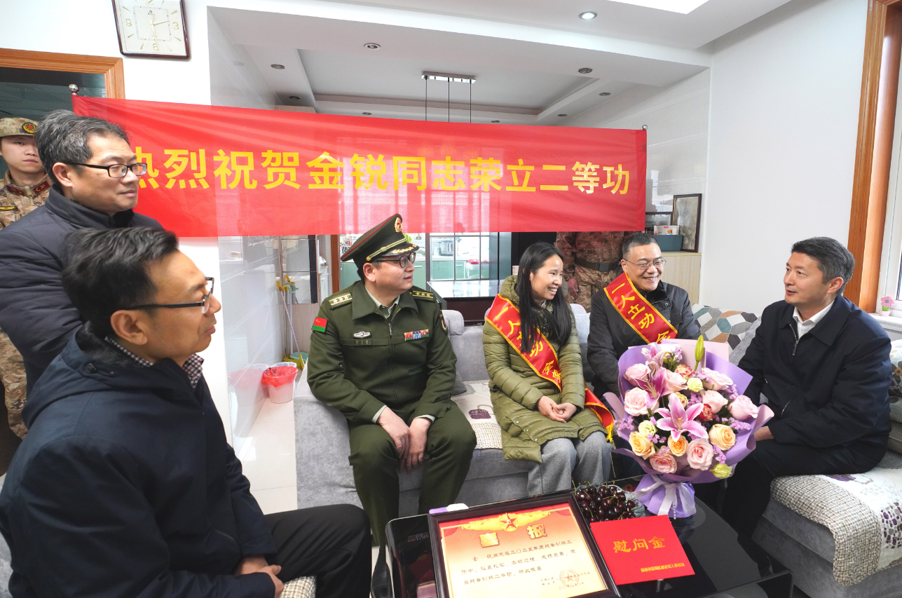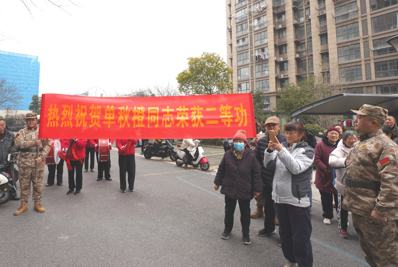 锣鼓喧天,锦旗熠熠。2月5日下午,崇川区政府、区人武部联合为去年荣立战备训练二等功的现役军人金锐、单秋橙家庭送立功喜报。区领导为其家人佩戴绶带红花,小区邻里乡亲共同见证荣耀,营造了“一人立功、全家光荣”的浓厚氛围。
