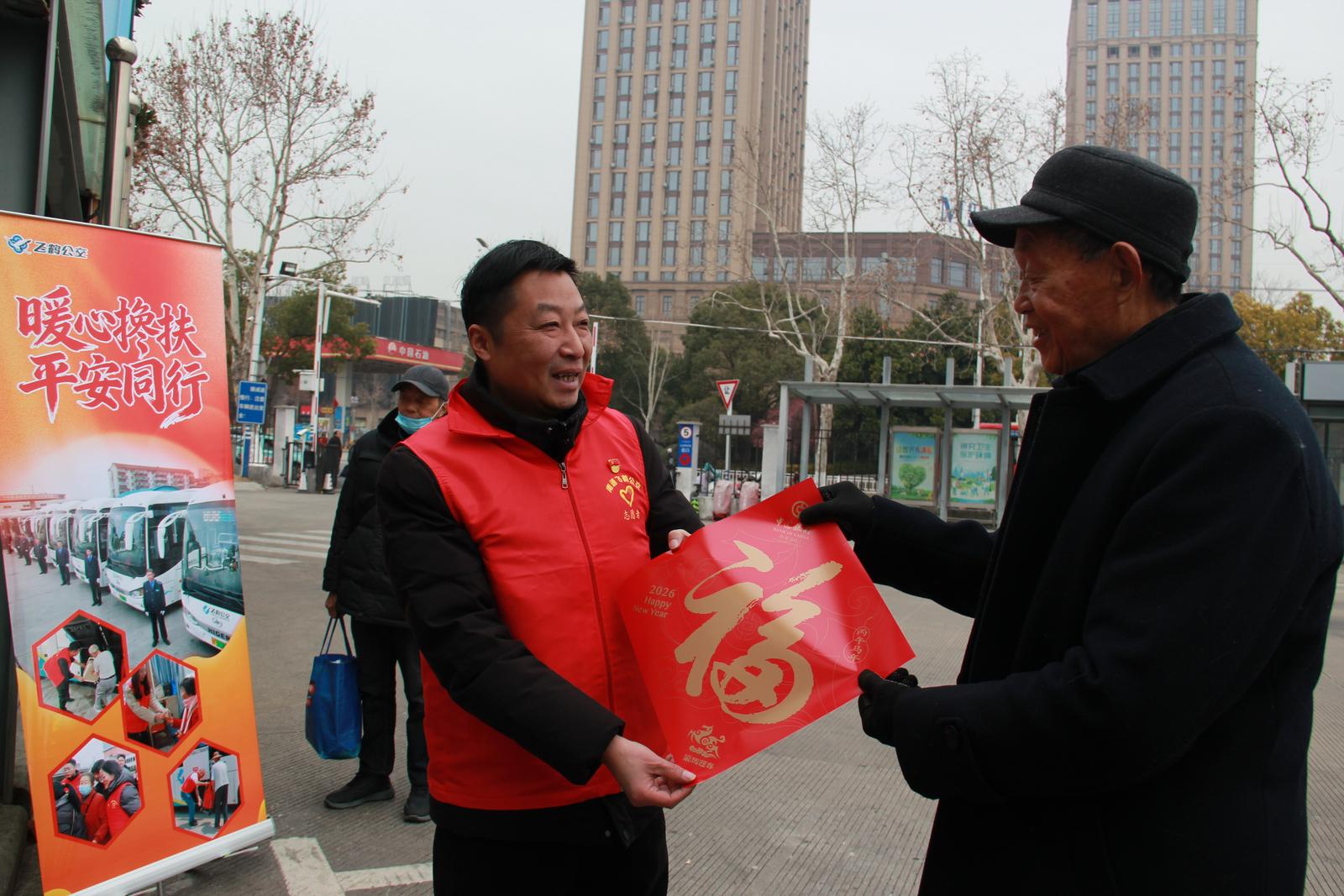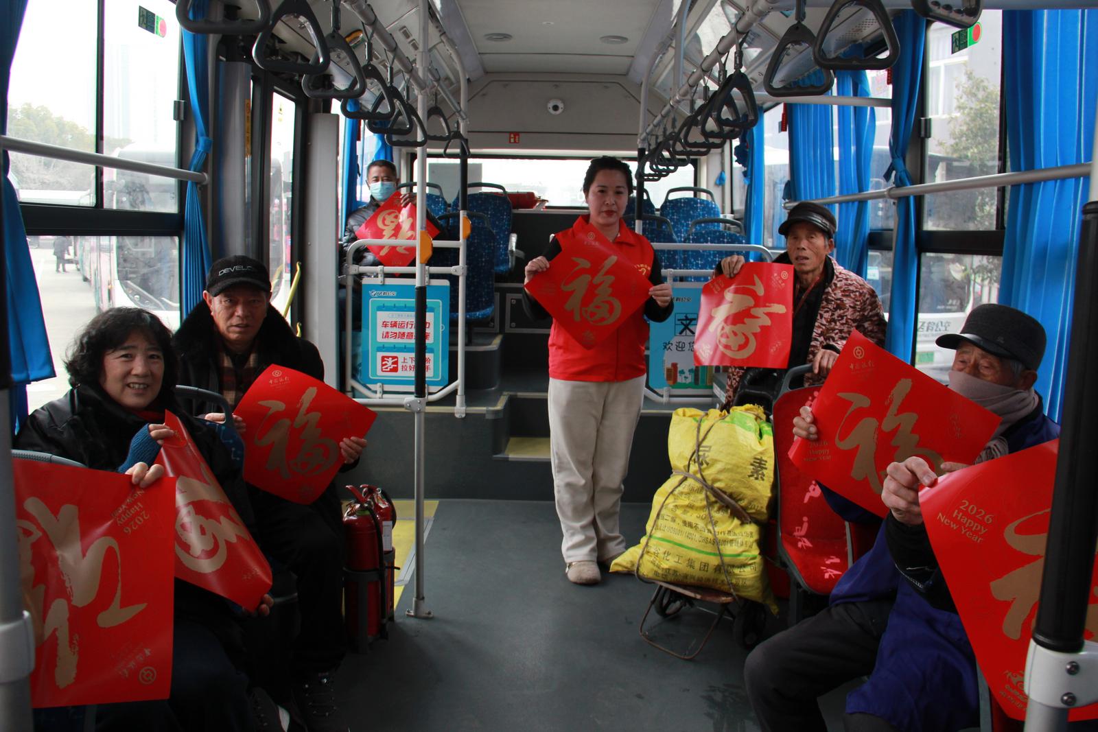 当天,南通校西公交回车场、汽车客运东站地下回车场H01线上客点、高铁西站公交回车场三地同时洋溢着温暖氛围。由公司党团员、入党积极分子及青年职工组成的志愿服务队,身着红色马甲,化身“春运暖心使者”,投入热情服务。他们为“老幼病残孕”及特殊困难旅客提供候车引导、行李搬运、无障碍乘车等帮助,并向旅客赠送新年福字。旅客们开心地收下这份“满满福气”,让回乡之路充满温馨的年味。