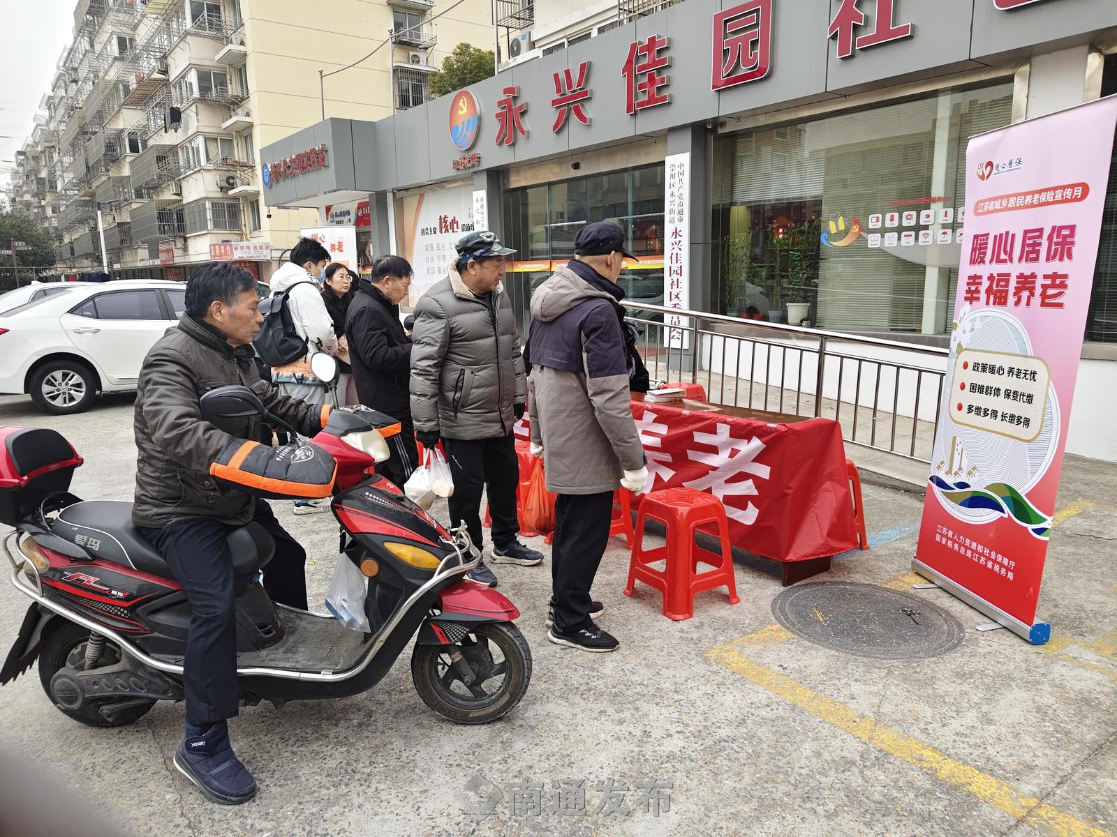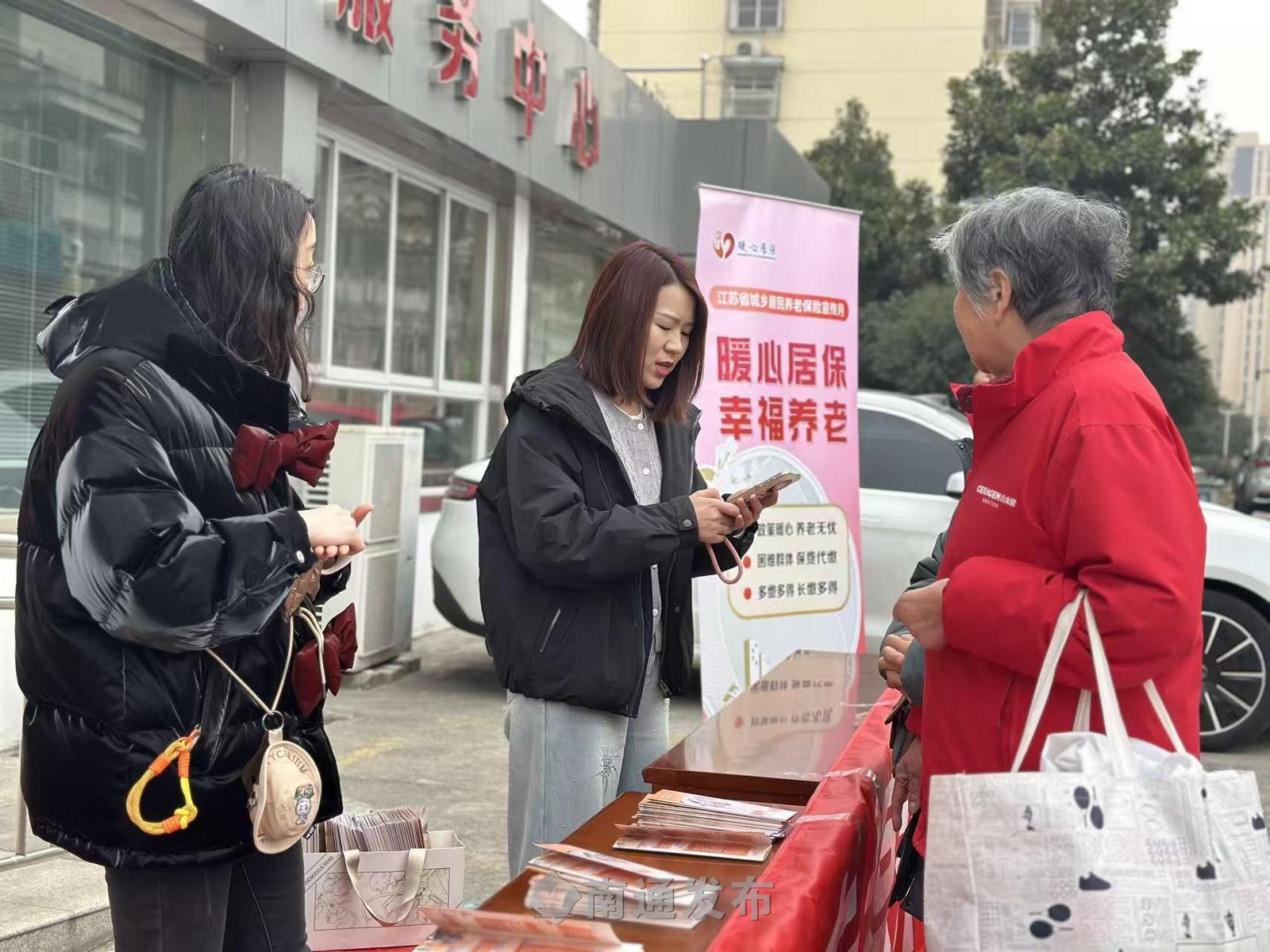 5日上午,崇川区在永兴街道永兴佳园社区开展“暖心居保、幸福养老”城乡居民基本养老保险宣传活动,人社、民政、残联等部门工作人员协同,为居民提供政策解读、参保续保等服务,正式拉开宣传月系列活动的序幕。