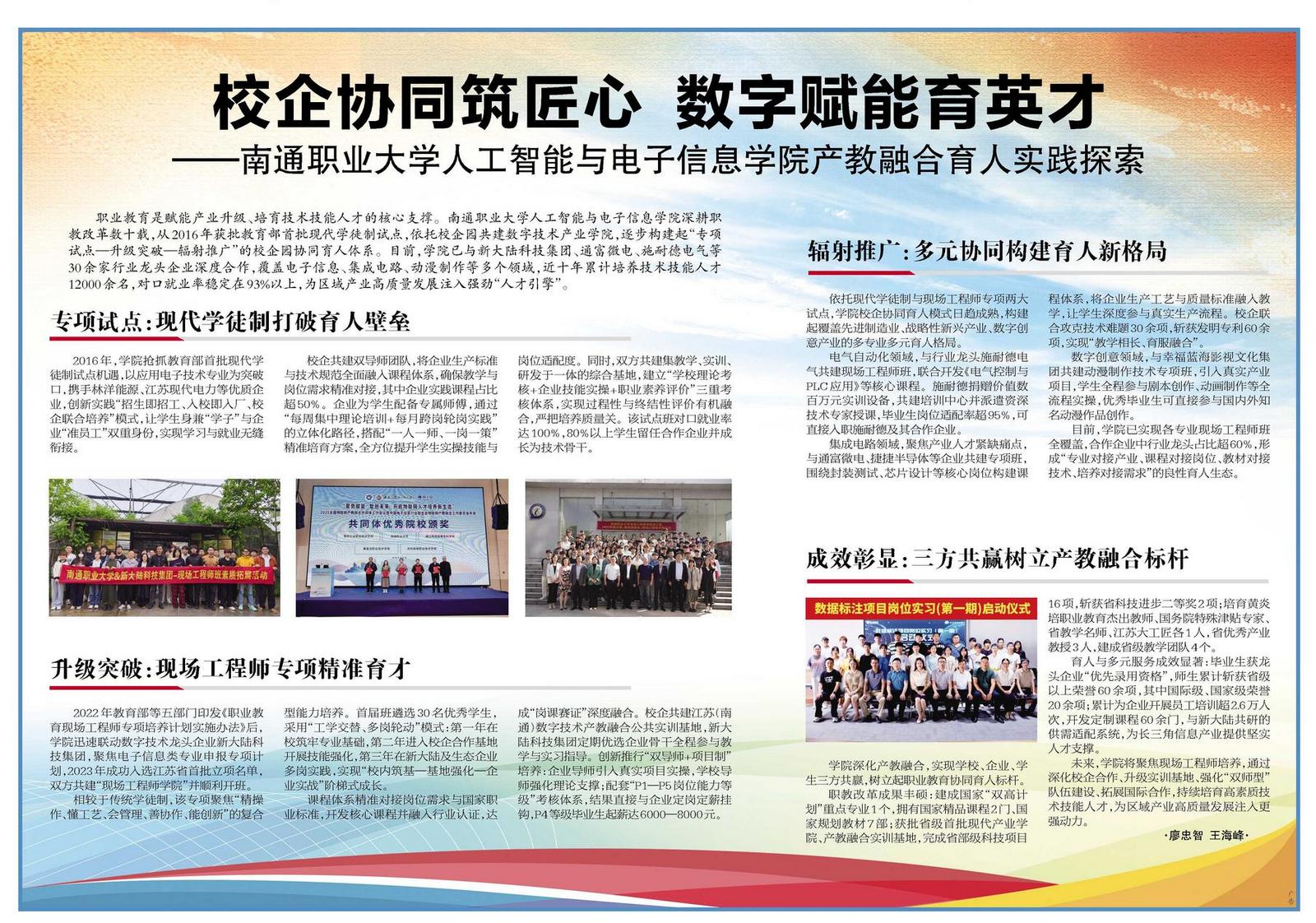 校企协同筑匠心 数字赋能育英才|南通职业大学人工智能与电子信息学院产教融合育人实践探索