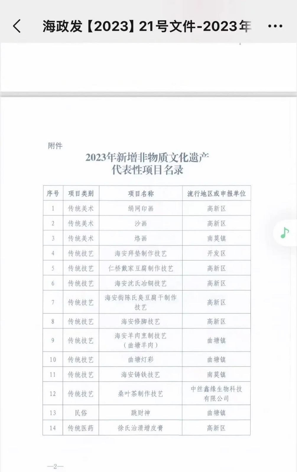 海政发(2023)21号文件2023年新增非物质文化遗产代表性项目名录,郑忠祖传的“绢网印画”序号NO.1,项目类别“传统美术”。