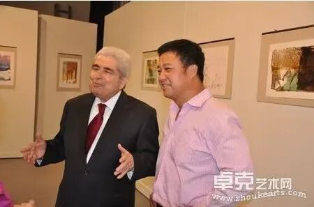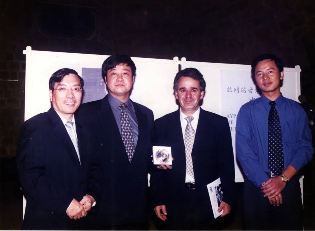 2000年5月经塞中友协的邀请,郑忠个展在塞浦路斯共和国首都尼科西亚文化中心举行。左起:中国驻塞大使宋爱国、郑忠、塞中友协会长迪诺思、副会长蔡医师