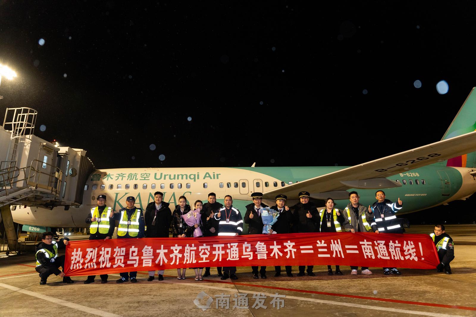 南通⇋兰州⇋乌鲁木齐航线为乌鲁木齐航空在南通机场的首次运营。据了解,乌鲁木齐航空是新海航航空集团旗下航空公司,也是新疆目前唯一一家本土航空公司,以“安全、快捷、贴心”为服务理念致力于让旅客享受愉快的航空出行体验。此次首航不仅是两地航空网络的重要拓展,更为南通与西北地区之间经济文化交流搭建了高效便捷的空中通道。