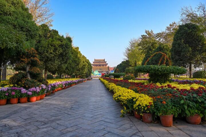 从河南开封龙亭公园沿殿阁铺展的