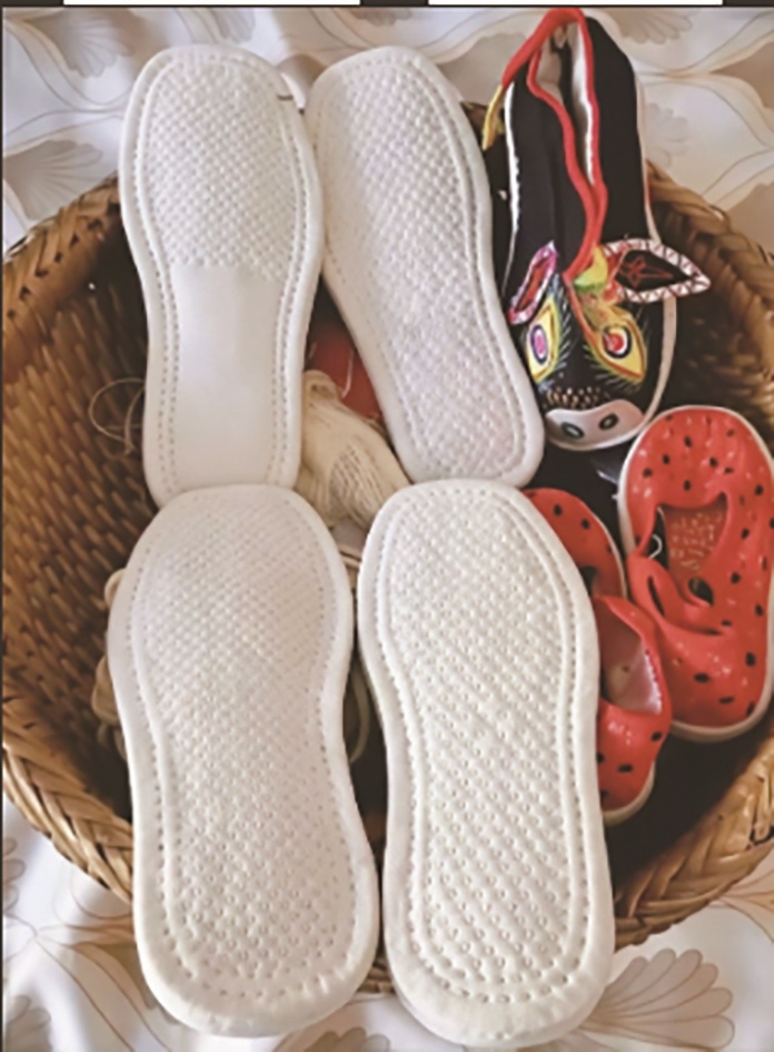 竹篮里摊开的几双鞋垫,像一方方未裁的素纸,细密的针脚是纸上的纹路,藏着母亲大半辈子的温良。
