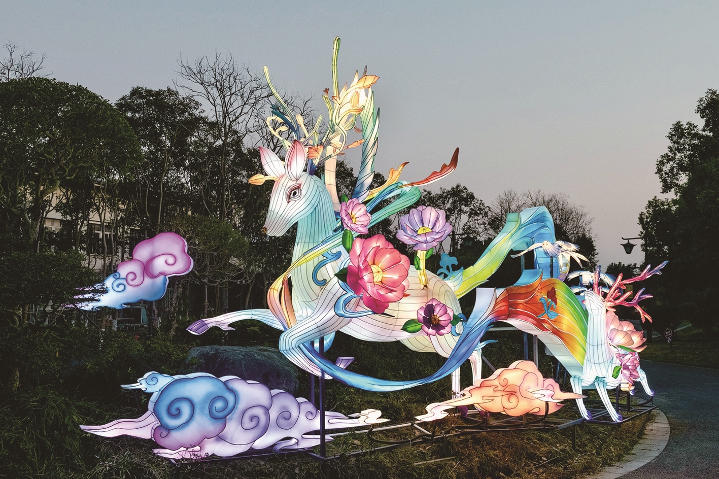 本届灯会的三大主题,恰是新春寓意的生动诠释。《以梦为马》呼应“龙马精神”的期许,让生肖文化在光影中焕活;《花仙胜境》延续“灯烧月下月如银”的诗意,为佳节添上浪漫底色;《招财纳福》传递着百姓对富足安康、岁岁平安的朴素向往,更承载着“灯”与“丁”谐音的人丁兴旺祈愿,藏着驱邪纳福的民俗密码。