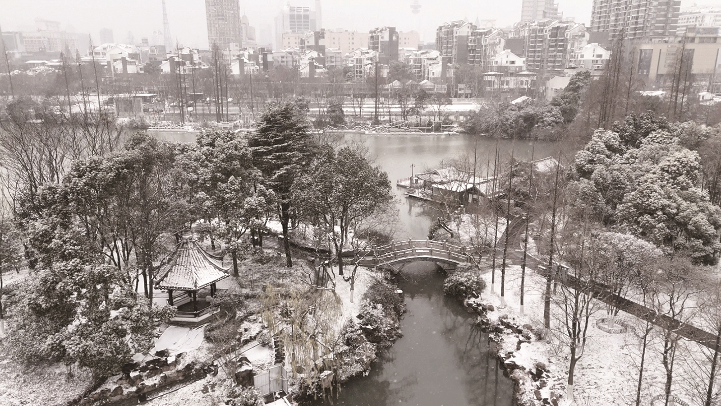 大寒节气,通城普降大雪。一夜风雪过后,濠东绿地彻底被裹进一片纯白之中,往日里熟悉的草木、亭台、栈道,都在白雪的描摹下换了模样。