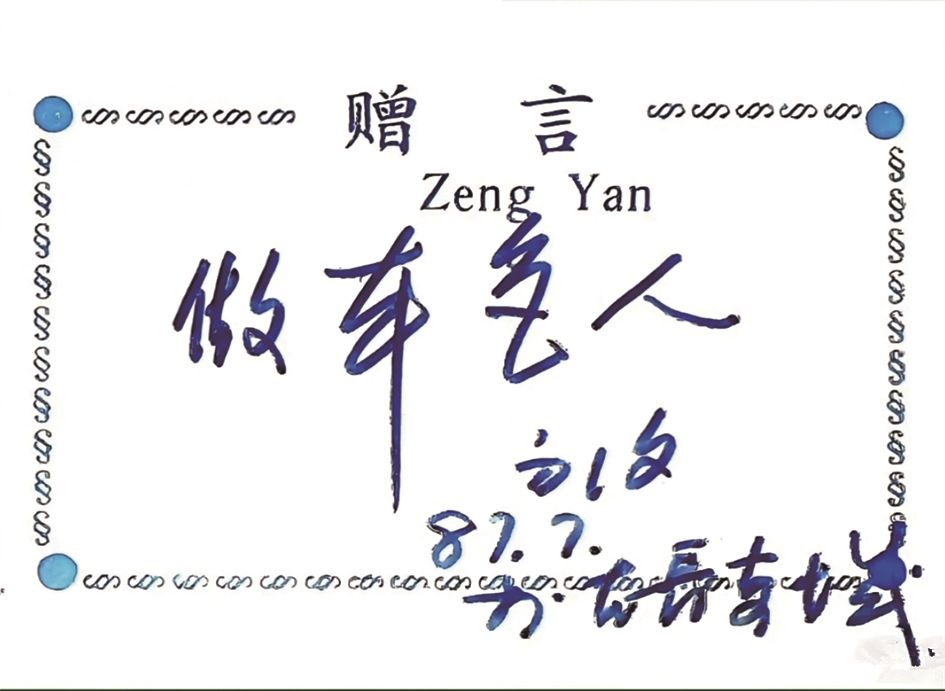 1987年7月,我从解放军西安政治学院毕业。离校前,同学们在《同窗集》上互赠留言,有不舍、有祝福、有鼓励……时任正团职老队长的军旅书法家,挥笔为我写下四字赠言:“做本色人”,字迹如龙蛇飞动,神采奕奕。这既是叮嘱,也是勉励。数十年来,我始终将老队长的教诲铭记于心、践行于行,本分做人、踏实做事。