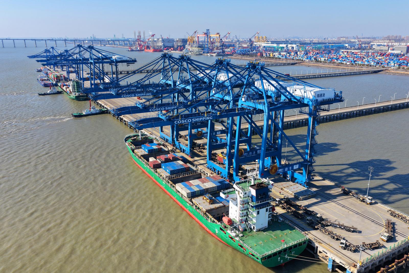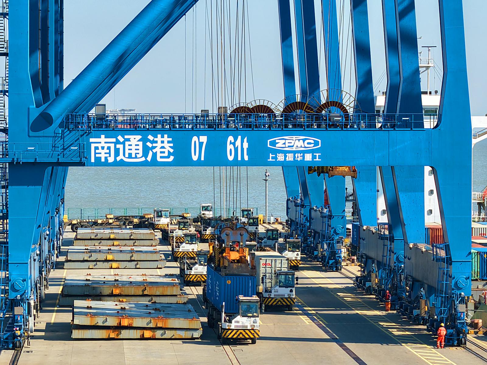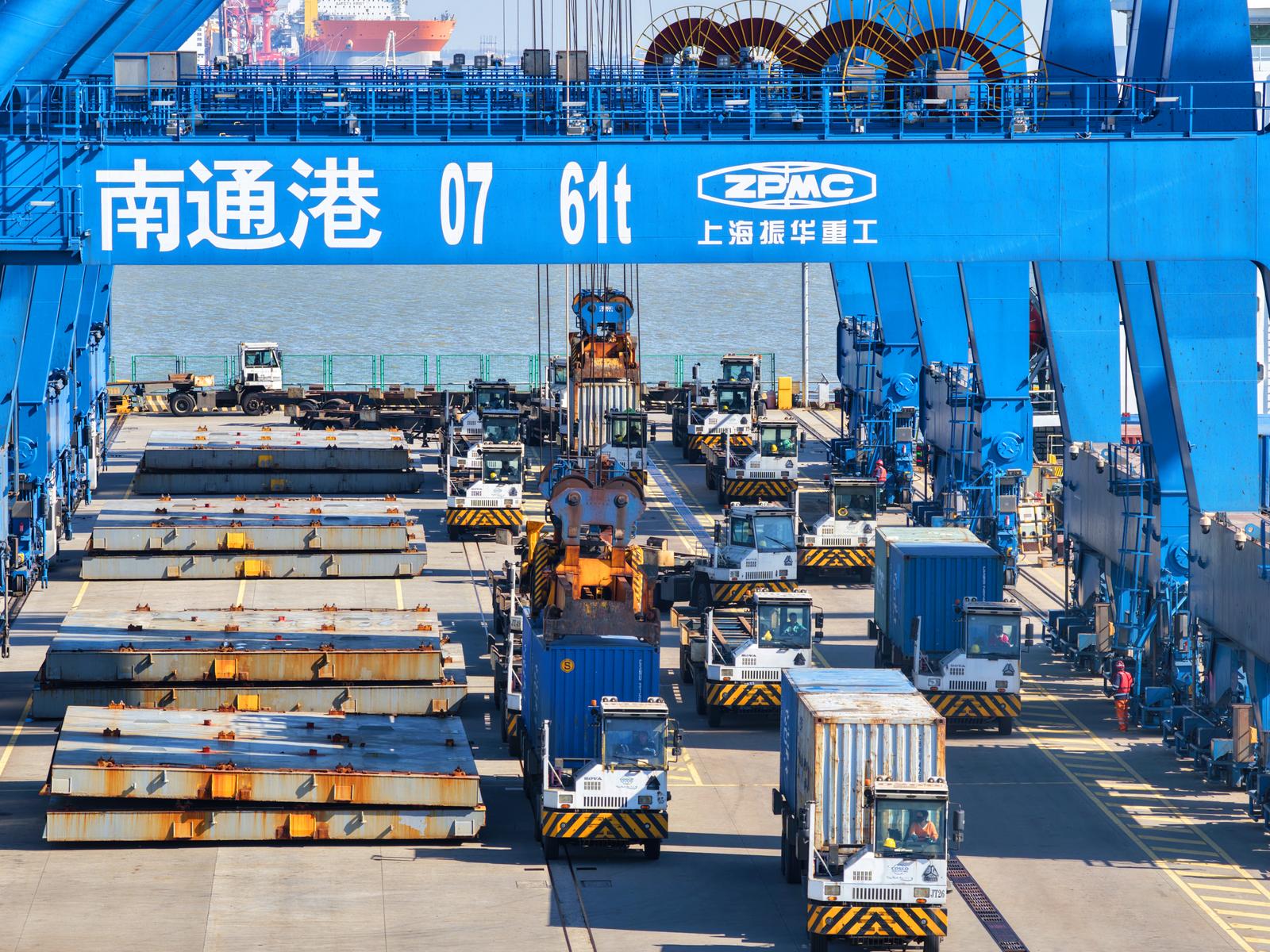 2026年2月8日,江苏南通港通海港口车来船往,一片繁忙。新年首月,通海港口完成集装箱吞吐量153489标箱,同比增长7.7%,创下历史新高,以强劲增势实现新年生产“开门红”。