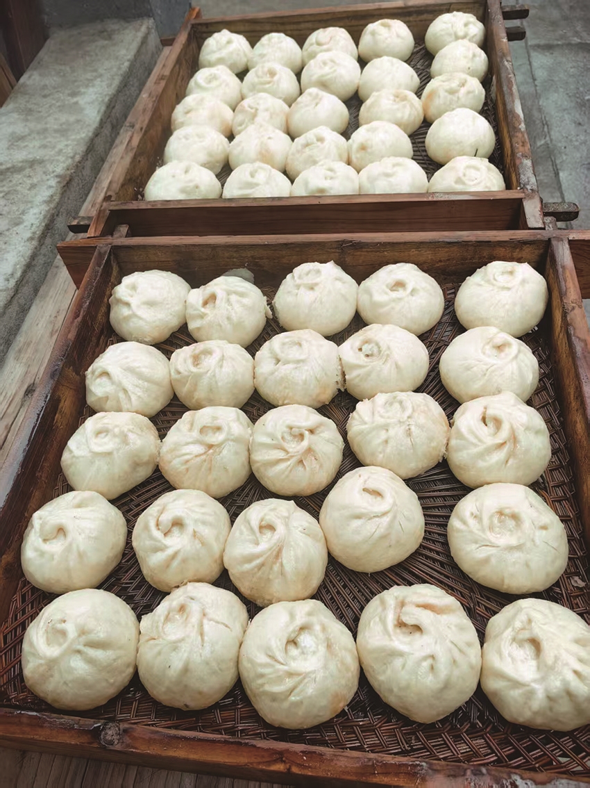 一夜不眠蒸馒头。一过腊月,农家人便把夏收的小麦在河里淘净,上桁晾晒后,用车运至村加工场磨面粉。晚上,发酵好的面团蓬松柔软,全家老小齐上阵,做馒头的做馒头,扯黄狼巴的扯黄狼巴。天明时,浓郁的馒头香混着热气漫遍全村。