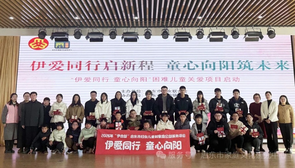 2月9日,由启东市妇联主办,启东市家庭文化研究中心承办的“伊爱同行,童心向阳”困境儿童关爱项目在启东市王鲍镇正式启动。来自王鲍镇、合作镇的20组困境儿童家庭参与本次活动。