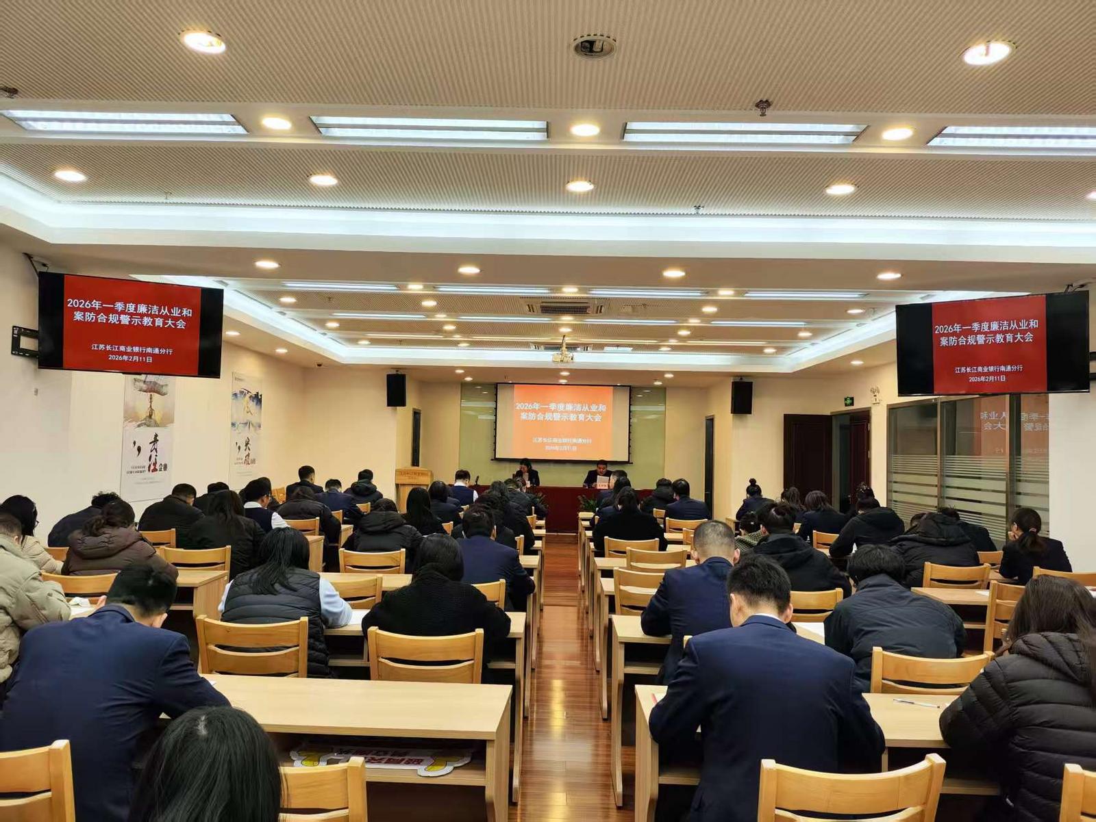 春节将至,为进一步深化清廉金融文化建设和案防合规管理工作, 2月11日,江苏长江商业银行南通分行召开一季度廉洁从业和案防合规警示教育大会。大会以案为鉴、以学促行、以诺践责,为全行干部员工敲响节前“警示钟”,筑牢思想“防火墙”。