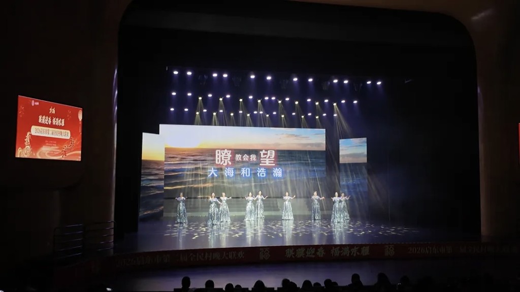 2月11日,启东保利大剧院内华灯璀璨、座无虚席。“福润东疆•骐骥踏春”2026启东市第二届全民村晚大联欢在热烈掌声中拉开帷幕。近500名演职人员陆续登台,共同演绎一场真正“全民参与,全民共享”的文化庆典。