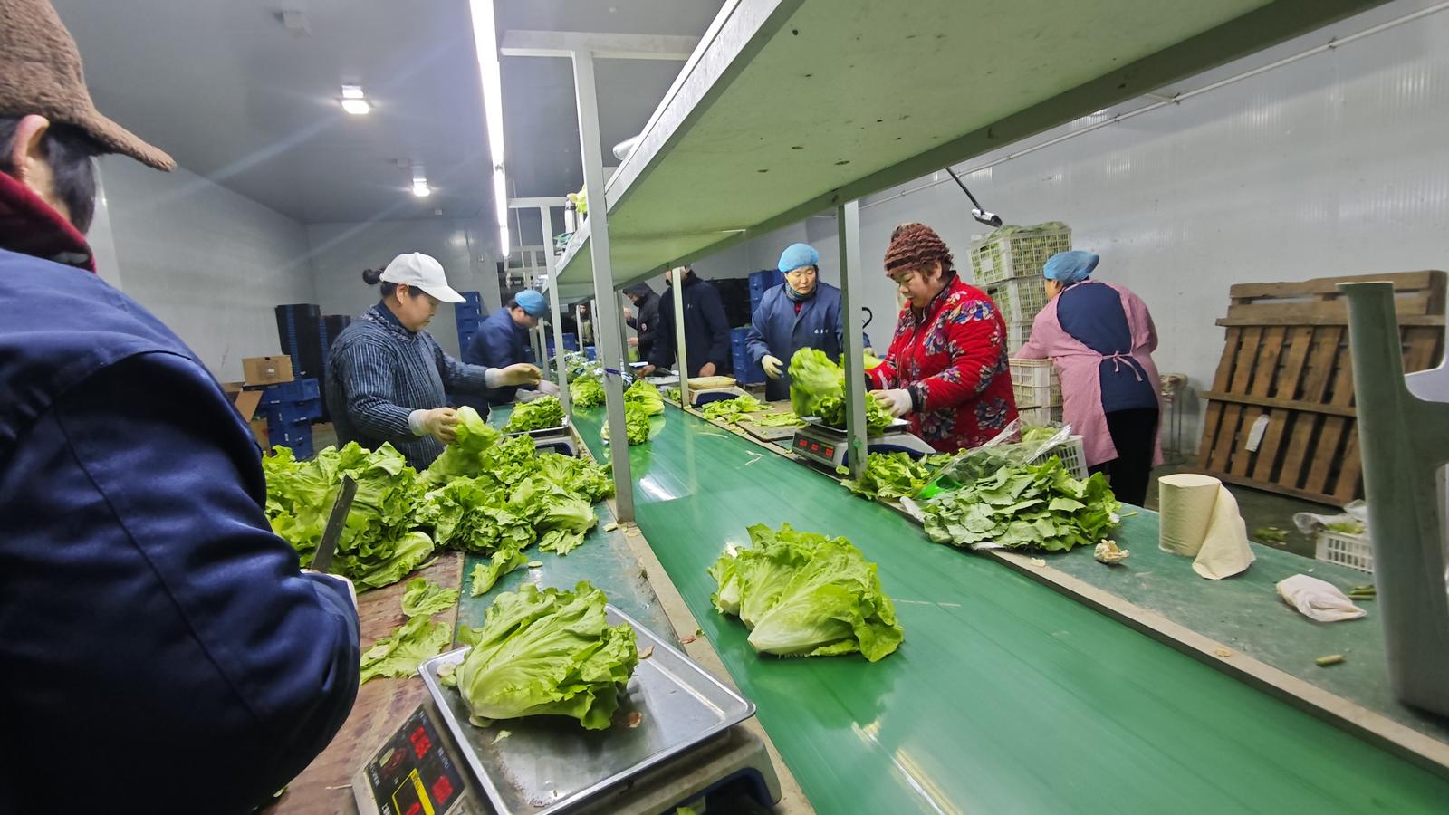 “早上收菜、中午分拣、下午发货,就是要保证全市及江浙沪地区的市民吃上新鲜的通州绿叶菜。”11日上午,记者走进通州区东社镇东平村的果蔬加工运输中心,基地内早已一派繁忙景象:20多名坚守岗位的工人分工明确,有条不紊地对刚运来的生菜进行分拣、清洗、包装、称重,每一道工序都严谨细致。