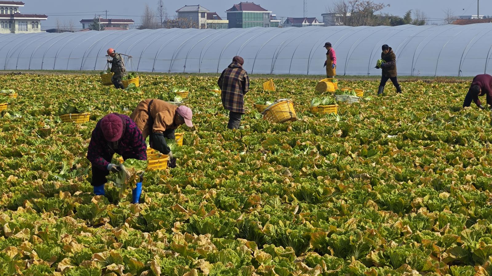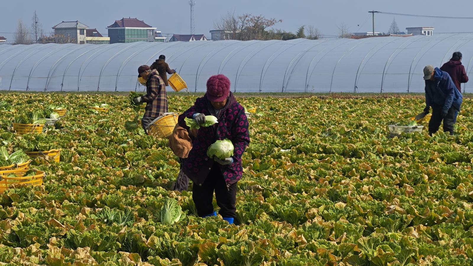 在种植基地,记者看到一辆大货车正停在田间地头等候,十几名工人正忙着采摘大白菜。“这批大白菜今天就会发到批发市场。”农场负责人常义森介绍,今年大白菜价格稳中有涨,态势十分良好。他告诉记者,此前五年,大白菜种植一直处于亏损状态,自己长年扎根农业一线,密切关注市场动态、精准预判市场需求,今年果断调整种植结构,将部分西蓝花等品种更换为大白菜。“今年,大白菜的产量与价格都比较稳定,我们在春节期间也安排了十多名工人坚守岗位,确保新鲜蔬菜及时上市。”