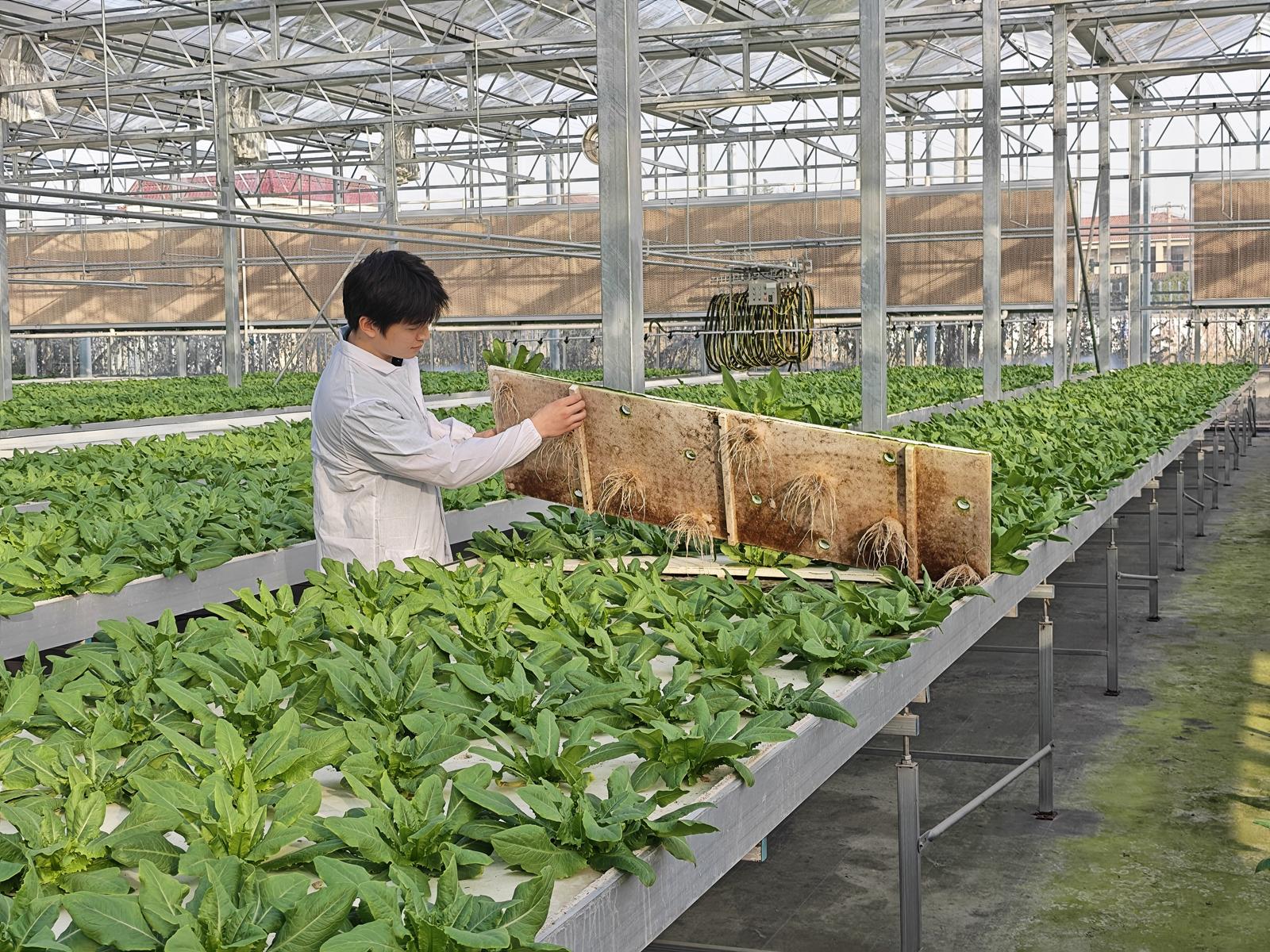 相较于传统土壤种植,水培模式的优势尤为凸显。“冬天只要温度达标,就能实现28天一个生产周期,第一批蔬菜采收后可立即栽种第二批,真正做到一年四季不间断供应。”陈静指着身旁的黑塌菜补充道,水培模式不仅大幅缩短了蔬菜生长周期,还能从源头减少病虫害滋生,同时可精准把控蔬菜生长所需的各类营养元素,让蔬菜品质更稳定、上市效率更高,综合效益远优于传统种植模式。