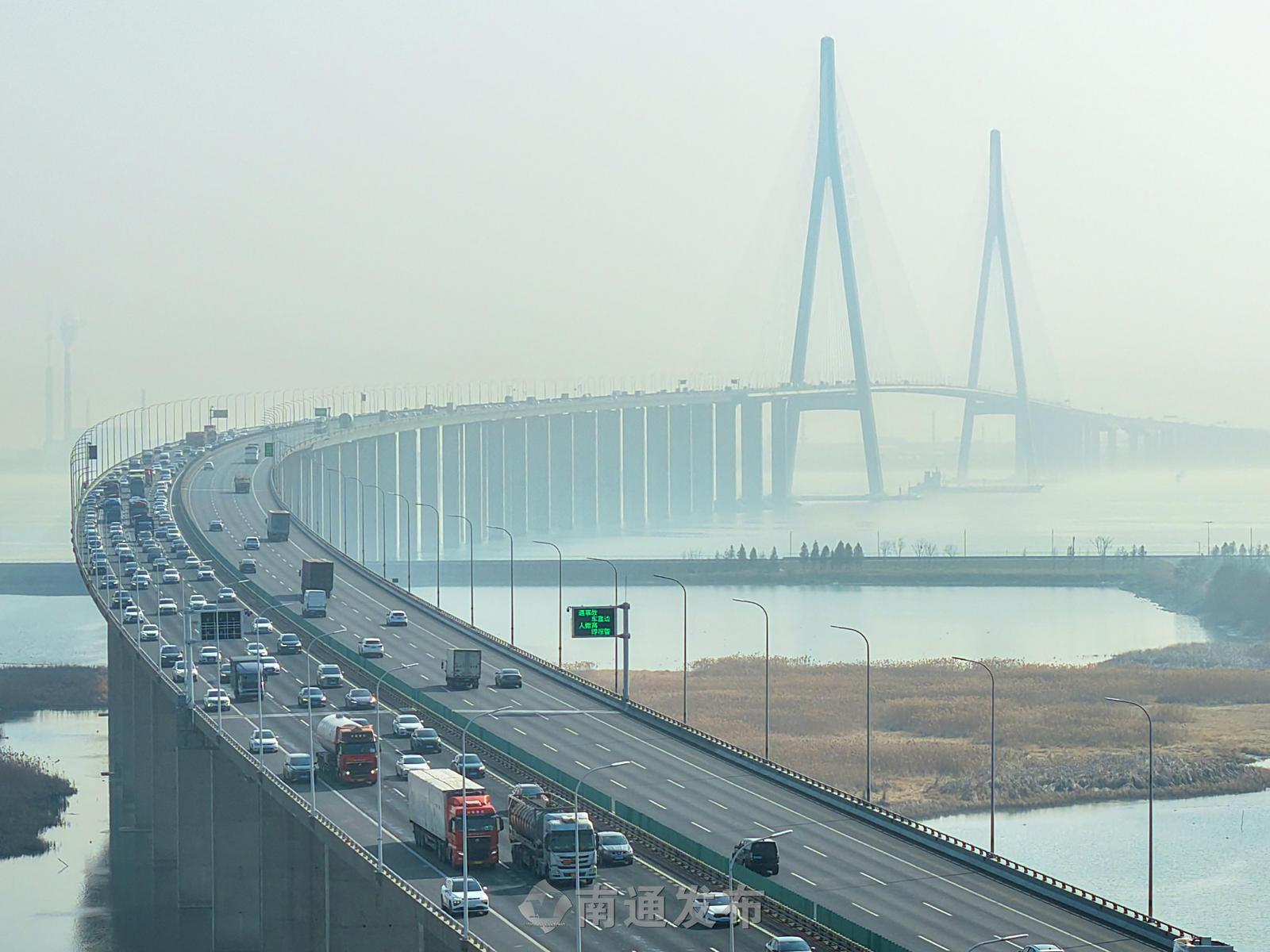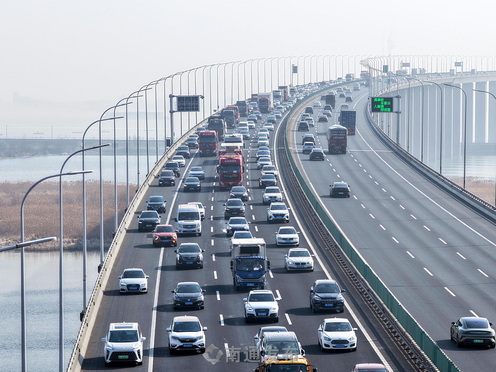 沈海高速苏通大桥现节前返乡车流高峰