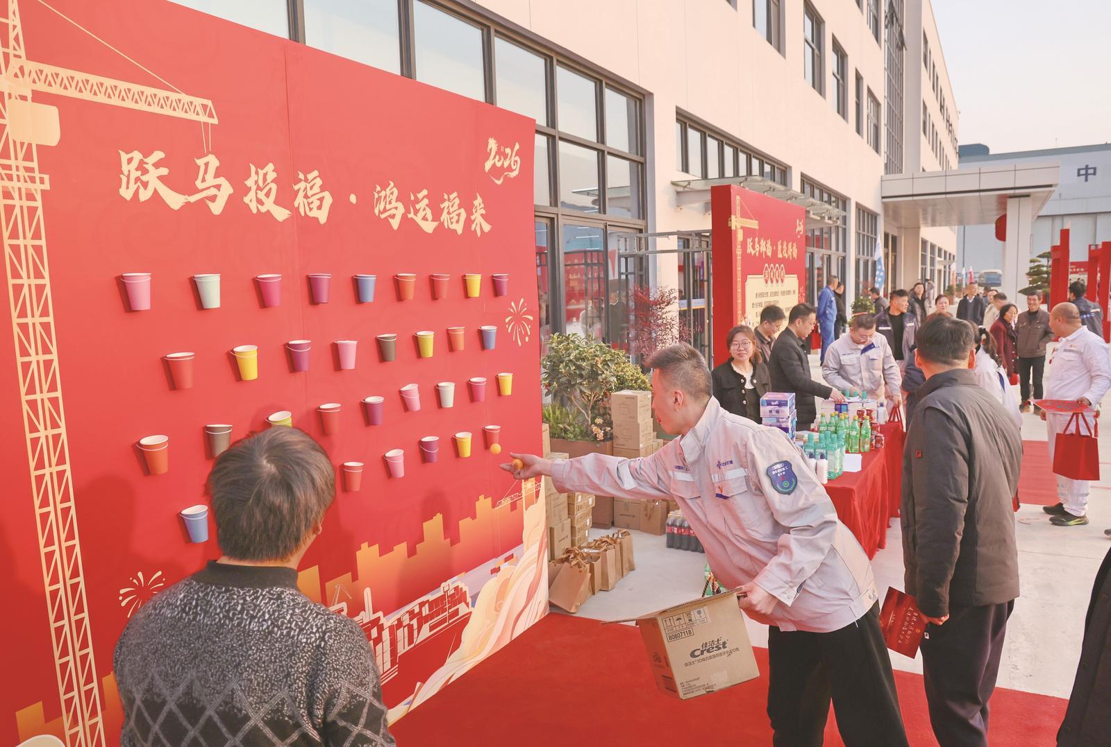 慰问的温情还没散,新春游园会就闹开了。投壶区里,职工们屏气凝神、抬手投箭,箭矢入壶的瞬间,欢呼声此起彼伏;书法区前,墨香四溢,书法家们挥毫泼墨,一个个遒劲的“福”字跃然红纸,职工们捧着墨迹未干的福字,小心翼翼折好,藏起这份新春的美好期许;游戏桌前,大人孩子围在一旁,看得津津有味,不时发出阵阵赞叹。厂区里的欢笑声、谈笑声交织在一起,年味也跟着更浓了。