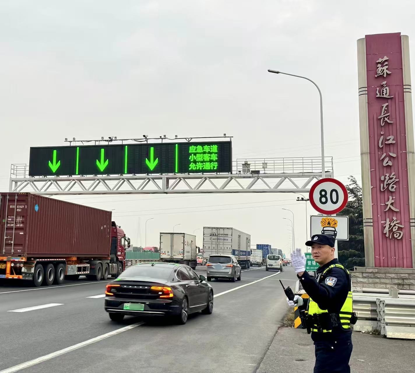 群众过节,交警过关。春运期间,南通公安交管高速四大队民警几乎全员在岗。他们在事故易发、易堵路段、时段科学布警,建立“多点屯警”“分段布警”快速反应机制,推行小循环巡逻,确保突发事件第一时间到达现场,全力守护大桥平安畅通。