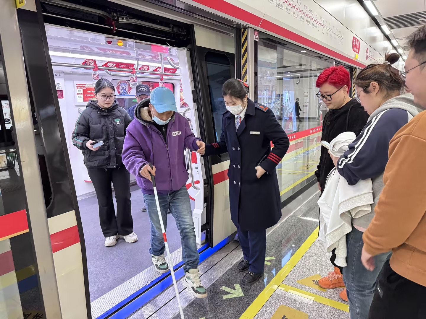 节日里的地铁车厢,年味浓郁、暖意融融。乘客们拎着年货、带着笑容,或是与家人视频通话分享团圆喜悦。来自湖南吉首的米唯明看着这一幕幕温馨场景,心中满是欣慰。“虽然不能回家与亲人团聚,但能护送每一位乘客平安抵达、与家人团圆,这份坚守就格外有意义。”