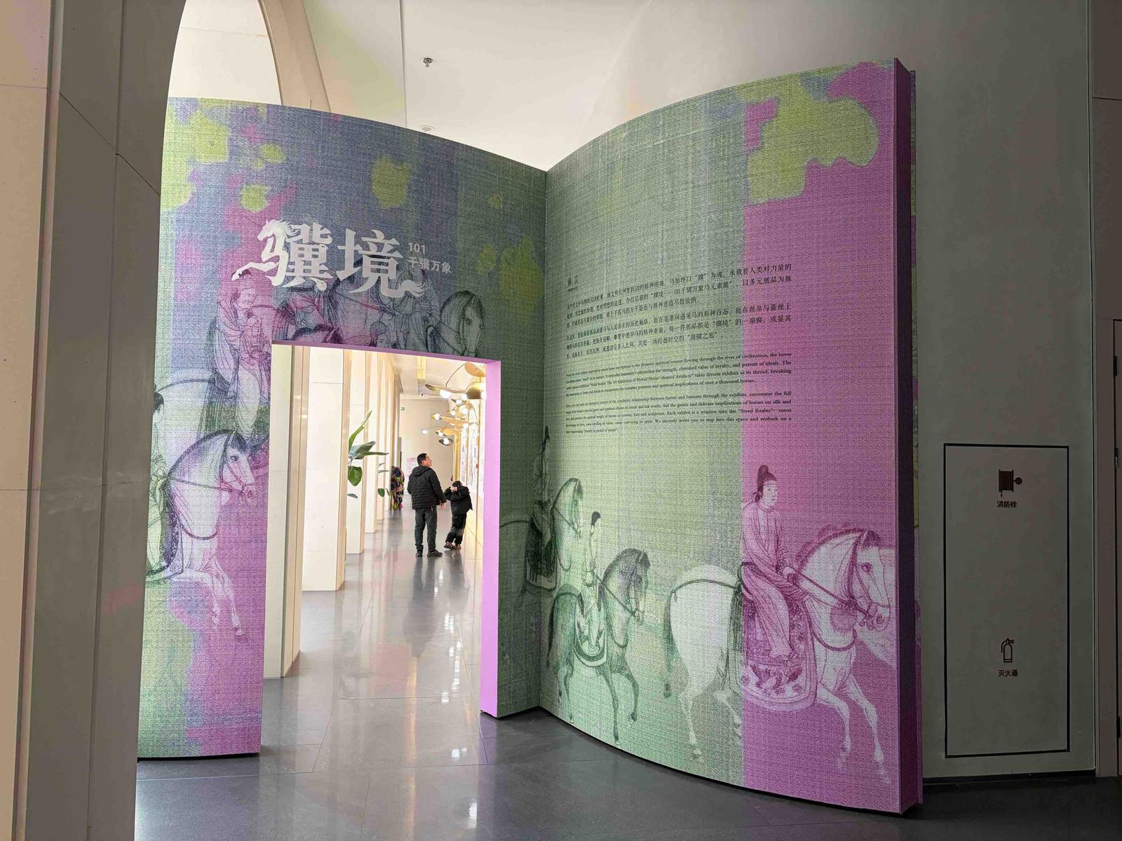 南通市富美帽饰博物馆以“骥境——101千骥万象马元素展”开启一场关于“马”的当代艺术表达。展览分画绘骥影、丝韵载骥、绣骥凝章、蕾丝织骥、千骥呈祥、骏形凝艺六大篇章;从生态、交通、战争、文字中的“马”,到丝帛、蕾丝、雕塑、帽饰中的“马”;从油画、版画、综合材料绘画中的“马”,到当代绘画与AI交融的《千马图》艺术装置,在这方空间里,“马”突破界限,实现历史、艺术与精神世界的多重融合。“展览里的马文化知识丰富,还有不少可供打卡的马元素艺术装置,非常适合带孩子来游览体验。”市民戴源表示。