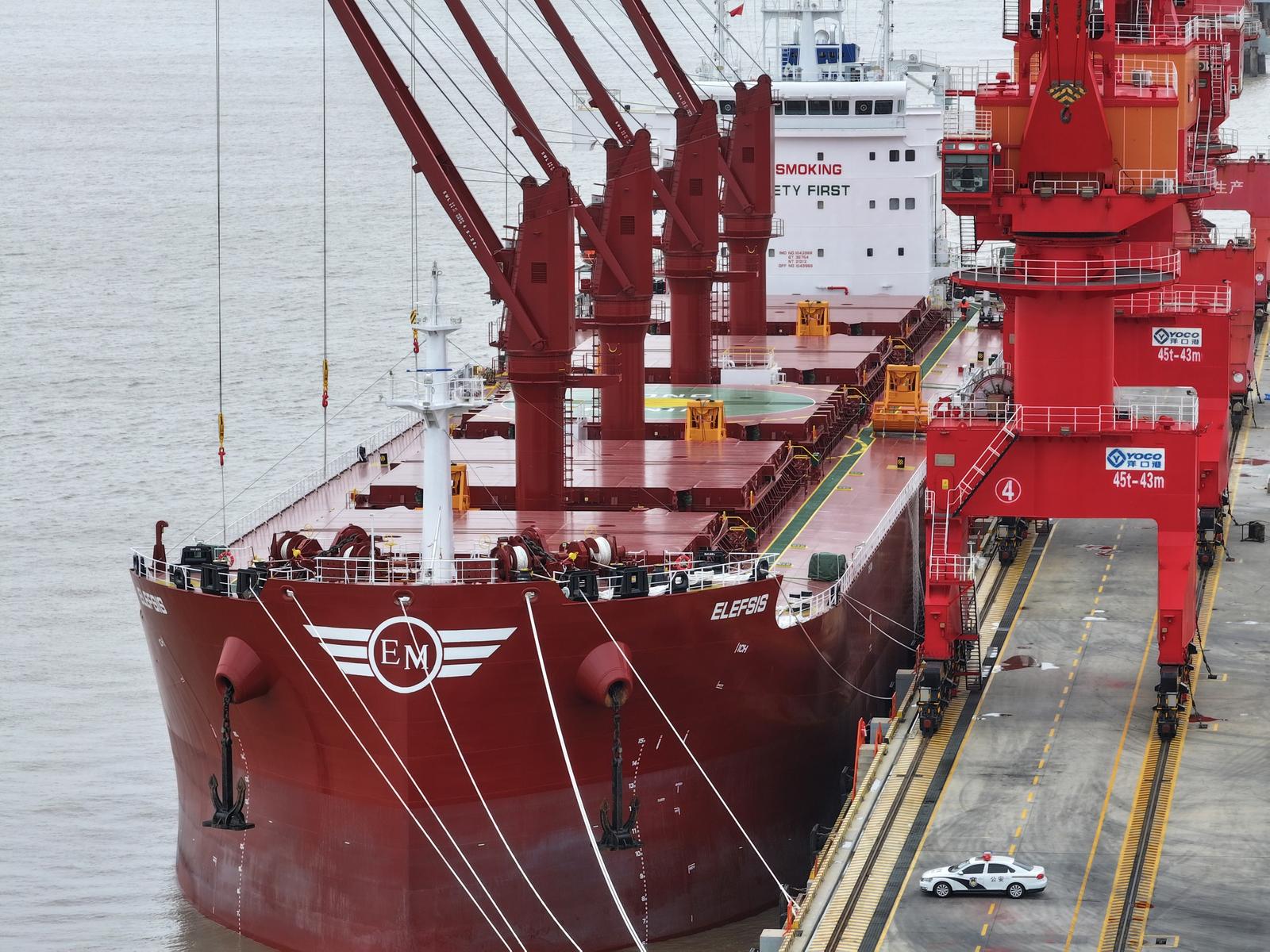 除夕之夜,神州大地处处洋溢着团圆气息,如东洋口港通用码头却依旧牵挂着一场特殊的“出海之约”。受大风天气影响,码头作业从15日暂时停歇,马耳他籍“埃莱西斯”轮稳稳靠泊在岸边,静静等候风浪减弱后重启装载作业。