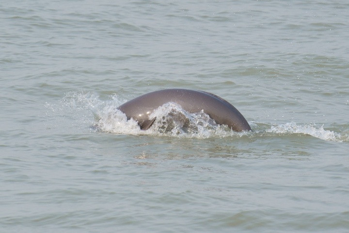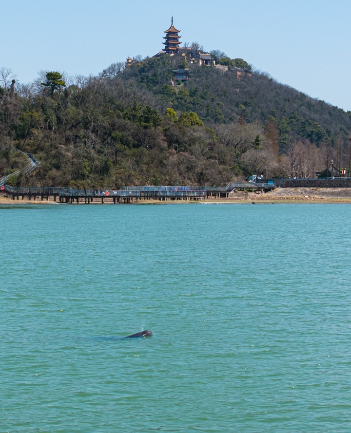 春水初生,长江南通段碧波荡漾。五山滨江岸畔,偶有圆润的身影破水而出,铅灰色的脊背在阳光下划出优美的弧线。