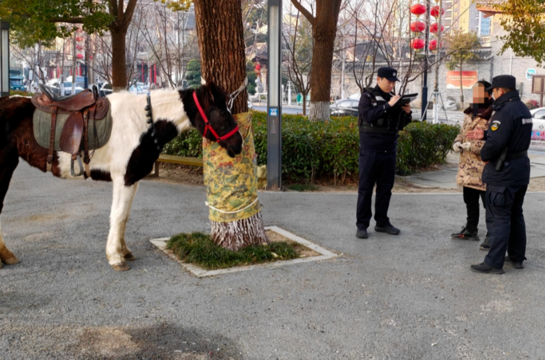 2月20日,正月初四清晨6时许,如皋市公安局经济技术开发区派出所接到群众求助电话:家中一匹马走失。值班民警立即展开搜寻。经过一个多小时的工作,最终将“离家出走”、正在空地上悠闲吃草的马匹找回。