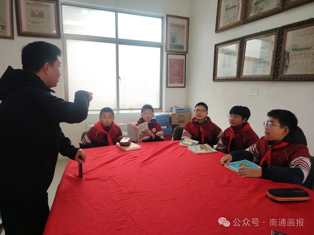 为丰富寒假生活,传承红色基因,厚植家国情怀,2月25日上午,南通市海门区实验小学五(2)班戚少阳、杜付钦、张泓竹、冯浩然、陈涛5名同学,在家长陪同下,走进通州区倪健报刊收藏馆,开展“红领巾寻访”寒假实践活动,在老报刊中品读历史、感受时代变迁。