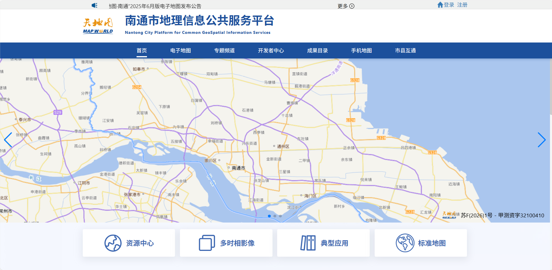 近日,我市地理信息公共服务窗口——“天地图·南通”全面升级。新版以“地理信息+空间可视”面貌崭新呈现,数据资源更丰富、平台功能更完善、应用场景更广泛,能为企业个人等提供公益且权威的地理信息服务。截至2026年1月,“天地图·南通”拥有政府、企事业单位、个人三类注册开发用户超4700个,支撑各领域应用近3000个。