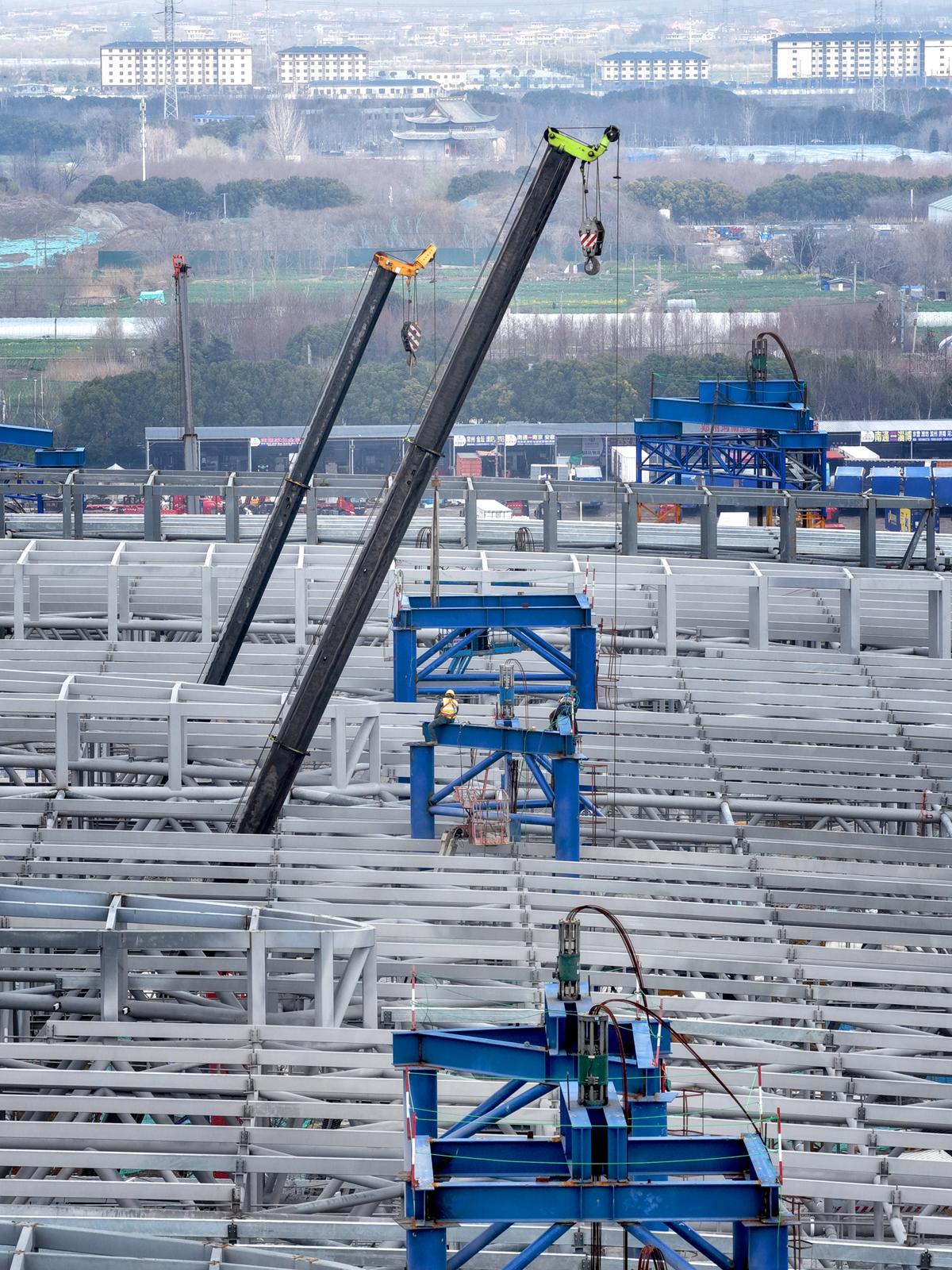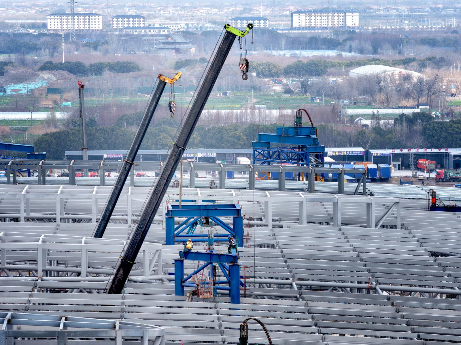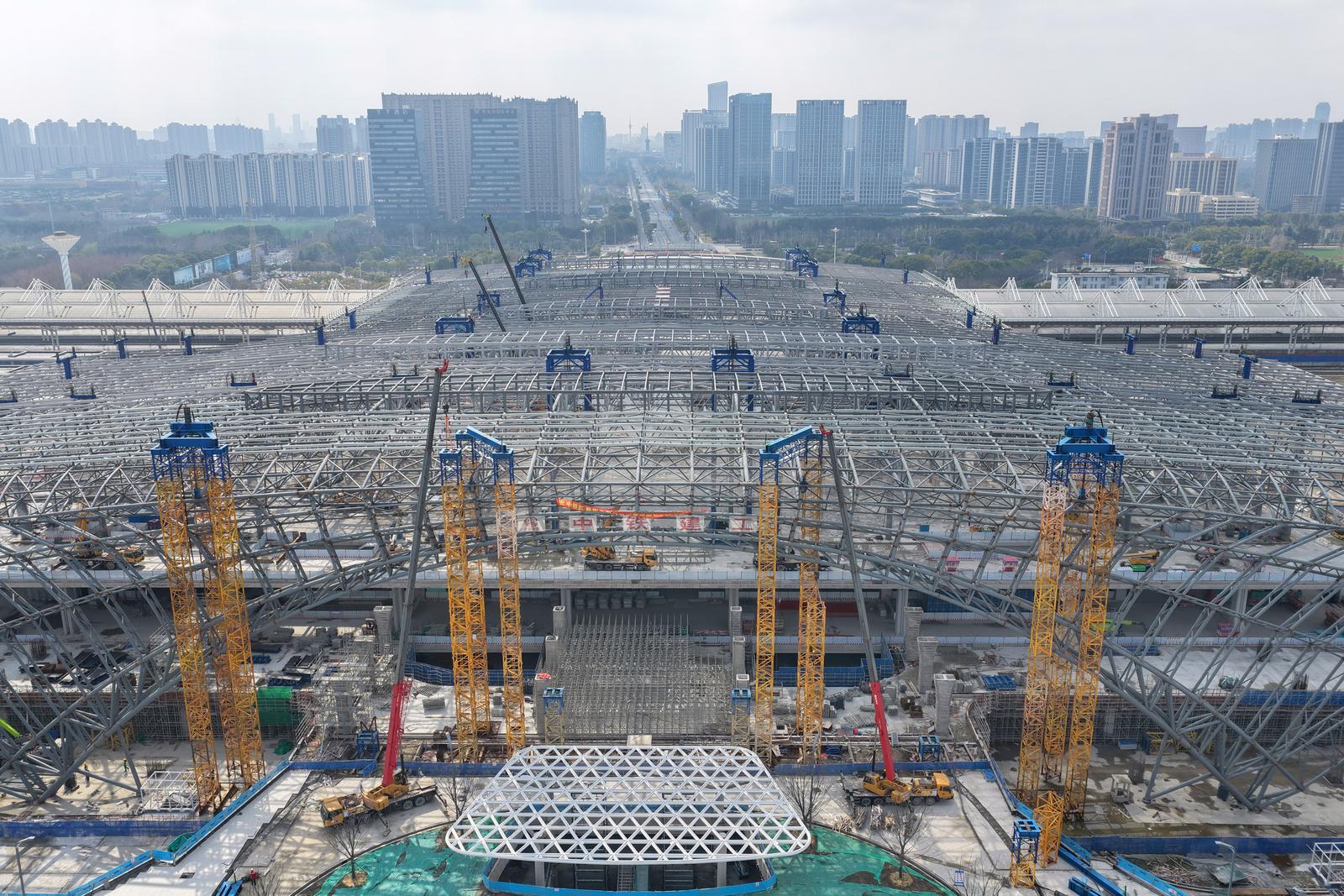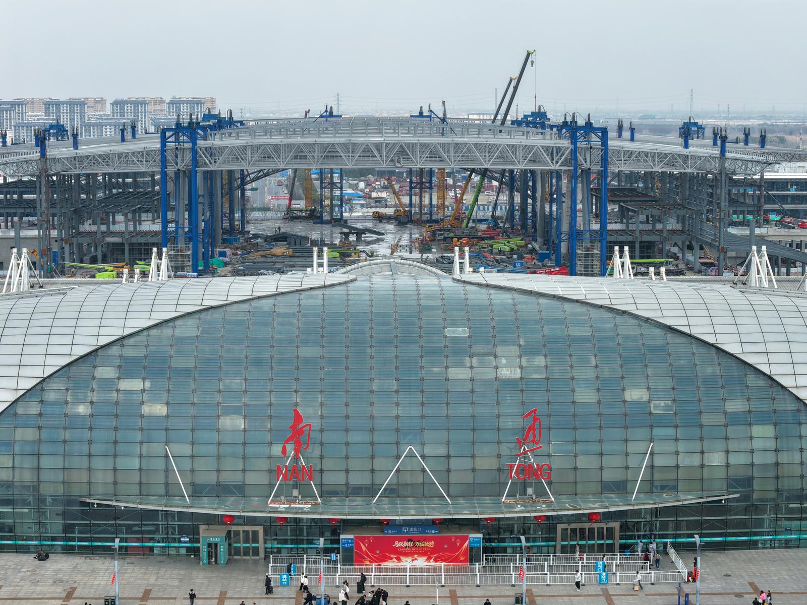 2026年2月28日,由中铁建工集团施工的新建南通站站房节后全面复工,站房及相关工程施工现场一片繁忙。