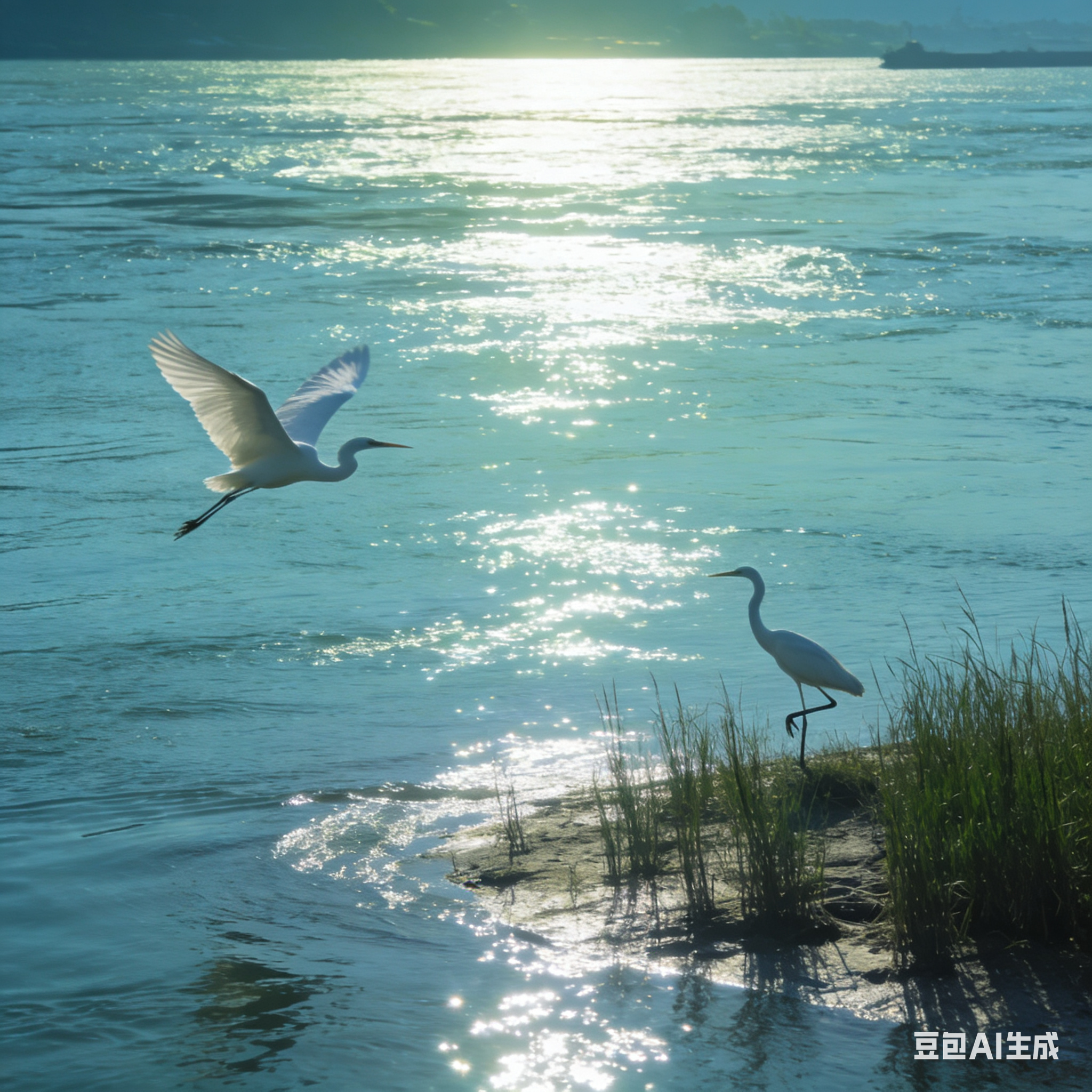 放眼远处,金色的夕阳给每一片波浪、每一茎芦苇、每一只白鹭的羽梢都镀上了一层温柔的、毛茸茸的边。那只一直单独立着的白鹭忽然将长长的喙从翅膀下拿出来,颈子一扬,发出一声清越的长鸣。