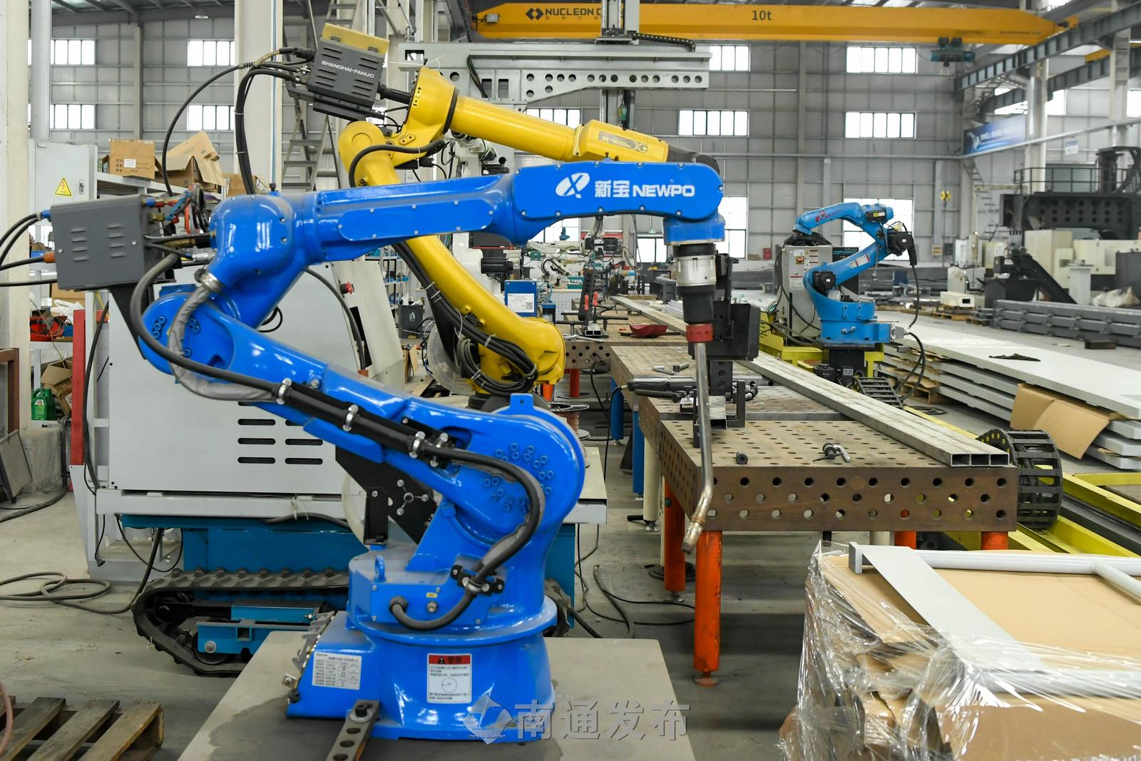 新宝机器人科技(南通)有限公司专注于智能焊接装备,自主研发的重型桁架机器人已广泛应用于船舶、汽车、桥梁等行业。2025年,公司交付智能化生产线96台套,手握50余项专利,成为智能制造装备领域的“隐形冠军”。公司总经理王勇透露,2026年计划与海安上海交通大学智能装备研究院共建联合研发中心,围绕机器人控制、大数据采集等领域开展技术攻关,力争全年设备交付量翻一番。