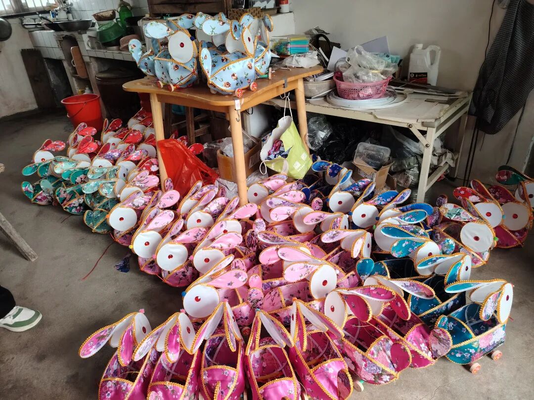 一盏兔儿灯,看似小巧,工序却繁琐复杂。对无法久坐、只能撑着拐杖站立劳作的陈泉而言,每一步都格外艰难。骨架要扎得匀称,兔身要糊得平整,装饰要贴得精巧,常常一站就是数个小时,腰背的刺痛阵阵袭来,他却从未停下手中的活计。母亲看在眼里,疼在心里,默默为他递上茶水、整理材料,温柔的叮嘱里满是心疼。这位和善的老人,用最朴素的陪伴守护着儿子,每当有人上门帮忙,她总是激动得热泪盈眶,反复说着感谢的话,善良的模样让人心头一暖。