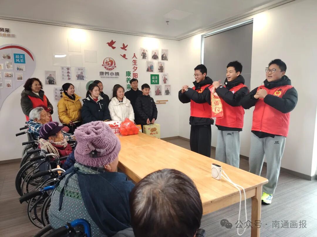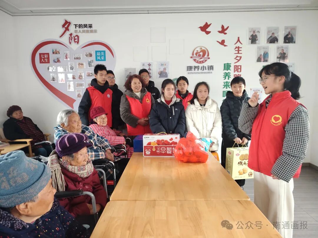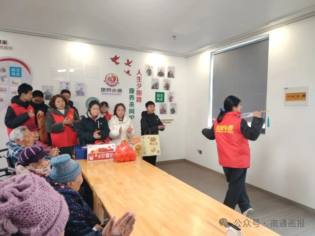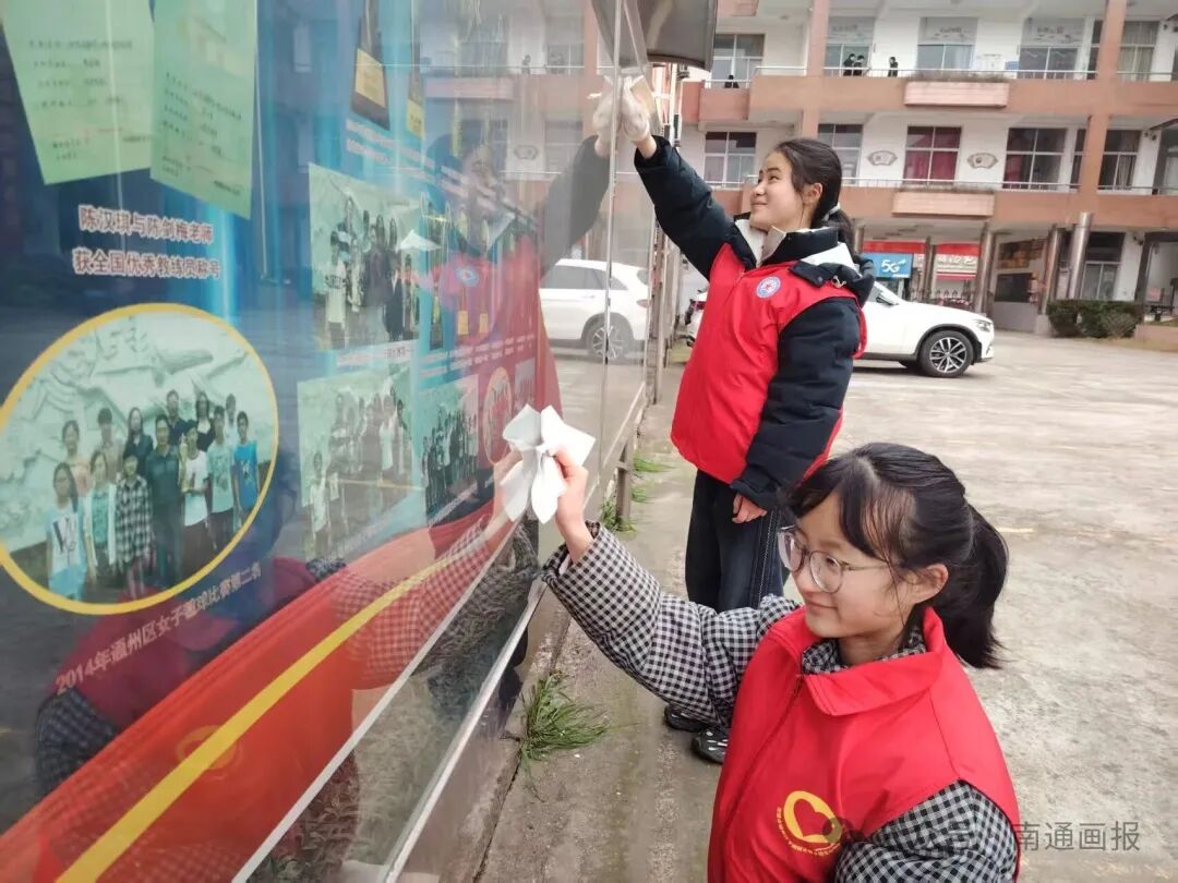 仪式结束后,志愿服务队迅速开展实践行动。志愿者分工协作,擦拭学校橱窗、整理图书角;走进新坝银发康养公寓,陪伴老人、表演节目;深入社区开展爱心帮扶,用实际行动传递温暖与正能量。