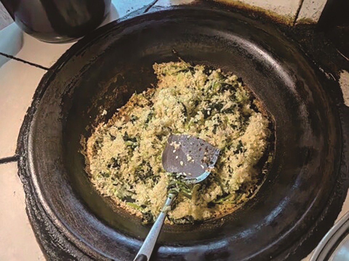 等鱼汤炖好的时候,菜饭也差不多了。我揭开锅盖,热气扑了一脸。用锅铲一翻,底下的锅巴露了出来,金黄金黄的,焦香焦香的。青菜的清香,萝卜的甜,都渗进了米饭里。每一粒米都亮晶晶的,吸饱了菜汁和猪油的香。