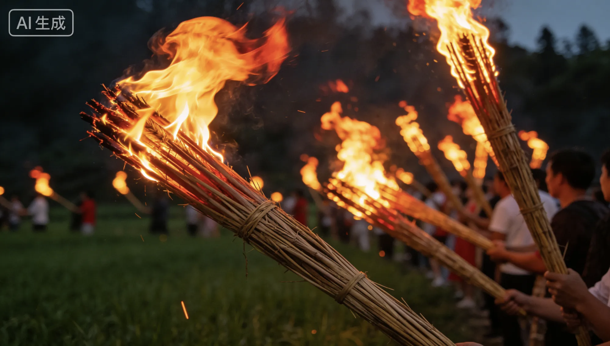 斗歌声与欢笑声此起彼伏,男女老少挥动火把,在田埂上奔跑、旋转。火光连缀成游龙,映红天际,仿佛星河倾泻人间。这不仅是嬉戏,更是深植于土地的智慧:火把熏烧田埂,驱虫禳灾;草木灰落于泥土,化作滋养丰收的天然之肥。长者们常说:“火把燃得亮、烧得久,才是好兆头。”这迸发的生命力与炽热的团结,是人与土地、与古老节律最酣畅淋漓的对话。
