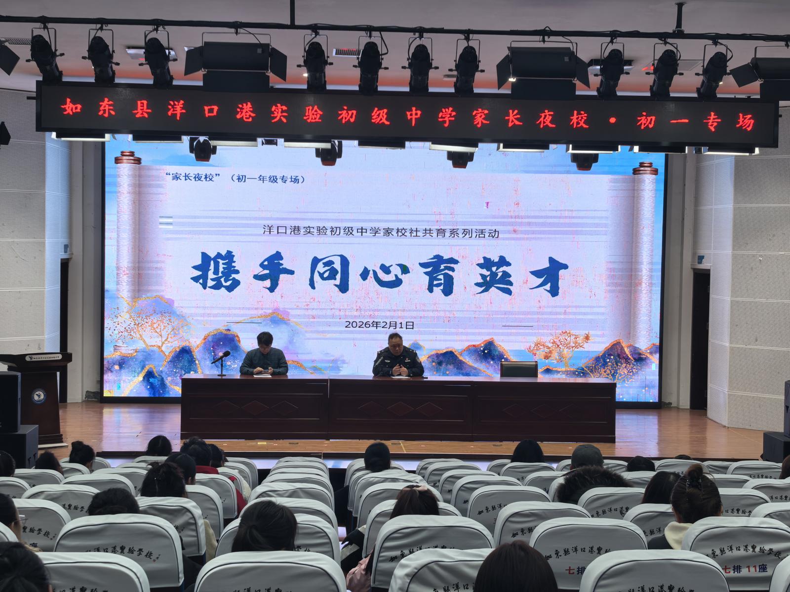 如东县洋口港实验初级中学联合长沙镇派出所、司法所,分年级开展“家长夜校”活动,将家长等待孩子放学的时间转化为自我提升的“增值时光”。学校结合各年级学生特点制定方案:初一年级聚焦家校共育基础,初二年级强化法治教育,初三年级重点关注青春期成长,分别开设普法宣教、心理支持等特色课程,通过系统化学习,提升家长综合素养与法治意识,搭建起校家社协同育人平台,形成“学校主导、家庭参与、社会支持”的良好格局。