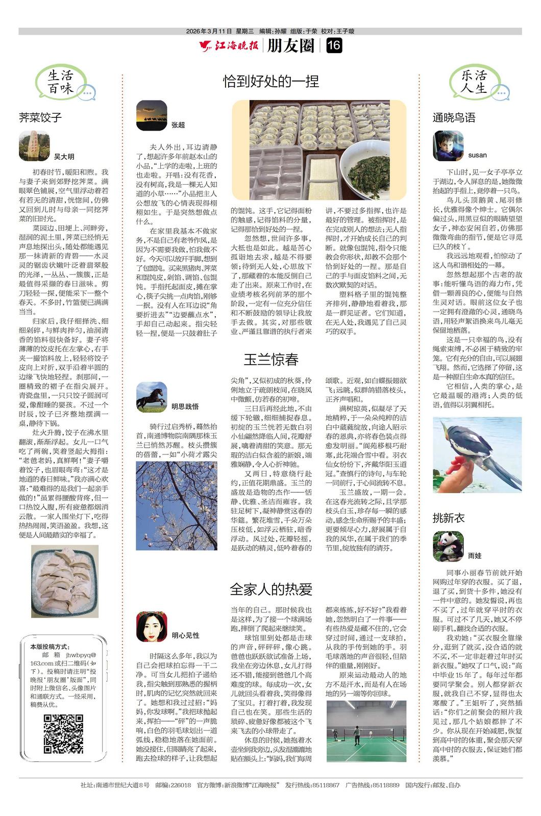 灶火升腾,饺子在沸水里翻滚,渐渐浮起。女儿一口气吃了两碗,笑着竖起大拇指:“老爸老妈,真鲜啊!”妻子嚼着饺子,也眉眼弯弯:“这才是地道的春日鲜味。”我亦满心欢喜:“最难得的是我们一起亲手做的!”虽累得腰酸背疼,但一口热饺入腹,所有疲惫都烟消云散。一家人围坐灯下,吃得热热闹闹,笑语盈盈。我想,这便是人间最踏实的幸福了。